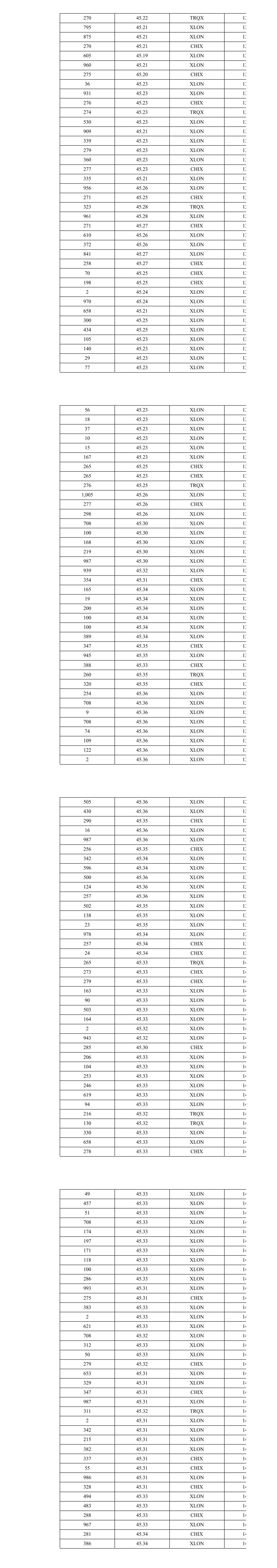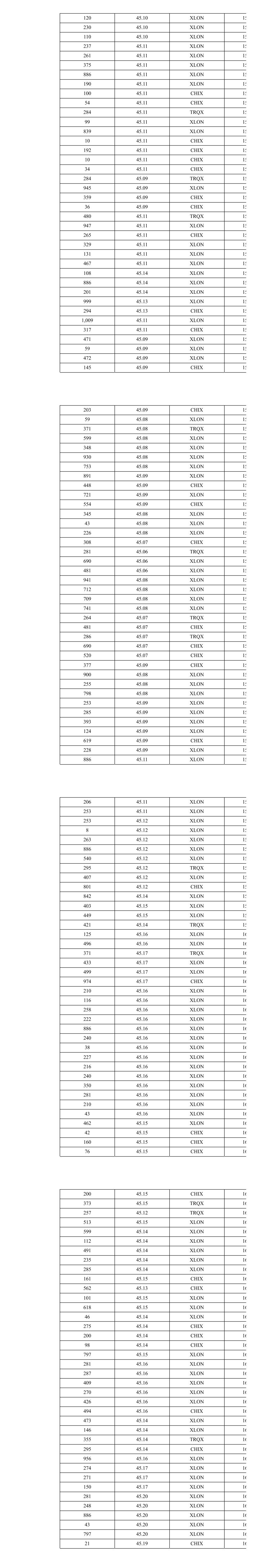 247 45.29 CHIX 14 161 45.29 CHIX 14 634 45.28 XLON 14 317 45.28 XLON 14 360 45.29 XLON 14 415 45.29 XLON 14 186 45.29 XLON 14 678 45.26 XLON 14 286 45.26 XLON 14 372 45.26 CHIX 14 215 45.25 XLON 14 76 45.25 XLON 14 207 45.25 XLON 14 312 45.24 TRQX 14 253 45.25 XLON 14 394 45.24 XLON 14 605 45.24 XLON 14 499 45.24 CHIX 14 330 45.22 CHIX 14 78 45.21 XLON 14 878 45.21 XLON 14 2 45.21 XLON 14 969 45.21 XLON 14 256 45.21 CHIX 14 637 45.20 XLON 14 980 45.21 XLON 14 193 45.20 XLON 14 492 45.20 XLON 14 500 45.20 XLON 14 500 45.20 XLON 14 47 45.20 XLON 14 1 45.19 XLON 14 81 45.19 CHIX 14 75 45.19 XLON 14 745 45.19 XLON 14 171 45.19 XLON 14 359 45.19 CHIX 14 953 45.17 XLON 14 16 45.17 XLON 14 28 45.17 CHIX 14 53 45.17 CHIX 14 255 45.17 CHIX 14 263 45.17 TRQX 14 239 45.18 XLON 14 388 45.18 CHIX 14 268 45.18 XLON 14 473 45.17 XLON 14 118 45.18 CHIX 14 79 45.18 CHIX 14 112 45.17 XLON 14 403 45.17 XLON 14 708 45.17 XLON 14 117 45.17 XLON 14 52 45.17 XLON 14 255 45.17 TRQX 14 230 45.18 XLON 14 23 45.18 XLON 14 177 45.18 XLON 14 1,157 45.18 XLON 14 967 45.17 XLON 14 989 45.21 XLON 14 109 45.22 XLON 14 256 45.22 XLON 14 284 45.22 XLON 14 220 45.24 XLON 14 180 45.24 XLON 14 573 45.24 XLON 14 708 45.24 XLON 14 270 45.24 XLON 14 199 45.24 XLON 14 247 45.24 XLON 14 508 45.25 XLON 14 97 45.25 XLON 14 708 45.25 XLON 14 187 45.25 XLON 14 829 45.24 XLON 14 281 45.24 TRQX 14 111 45.24 XLON 14 251 45.24 CHIX 14 587 45.24 CHIX 14 125 45.22 CHIX 14 978 45.22 XLON 14 32 45.22 XLON 14 622 45.22 CHIX 14 256 45.20 TRQX 14 588 45.20 CHIX 14 986 45.19 XLON 14 30 45.21 XLON 14 291 45.21 TRQX 14 732 45.21 XLON 14 238 45.21 XLON 14 356 45.20 CHIX 14 129 45.20 XLON 14 124 45.20 XLON 14 366 45.21 XLON 14 248 45.21 XLON 14 245 45.21 XLON 14 12 45.21 XLON 14 84 45.21 XLON 14 270 45.20 CHIX 14 350 45.20 CHIX 14 1,003 45.19 XLON 14 308 45.20 XLON 14 642 45.20 XLON 14 309 45.20 CHIX 14 117 45.19 XLON 14 136 45.19 XLON 14 36 45.19 XLON 14 116 45.20 XLON 14 1,005 45.18 XLON 14 612 45.18 CHIX 14 979 45.19 XLON 14 6 45.20 CHIX 14 200 45.19 XLON 14 767 45.19 XLON 14 424 45.20 CHIX 14 210 45.20 CHIX 14 2 45.18 CHIX 14 599 45.18 CHIX 14 940 45.18 XLON 14 260 45.19 TRQX 14 708 45.19 XLON 14 250 45.19 XLON 14 984 45.18 XLON 14 356 45.18 CHIX 14 254 45.17 TRQX 14 965 45.16 XLON 14 276 45.16 CHIX 14 194 45.14 XLON 14 242 45.14 XLON 14 288 45.14 XLON 14 288 45.14 XLON 14 2 45.14 TRQX 14 264 45.14 TRQX 14 342 45.13 XLON 14 334 45.13 XLON 14 280 45.13 XLON 14 525 45.13 CHIX 14 638 45.11 XLON 14 357 45.11 XLON 14 630 45.13 CHIX 14 342 45.12 XLON 14 638 45.12 XLON 14 274 45.11 CHIX 14 30 45.10 XLON 14 440 45.12 XLON 14 505 45.12 XLON 14 164 45.11 CHIX 14 648 45.12 XLON 14 326 45.12 XLON 14 253 45.11 CHIX 14 400 45.10 XLON 14