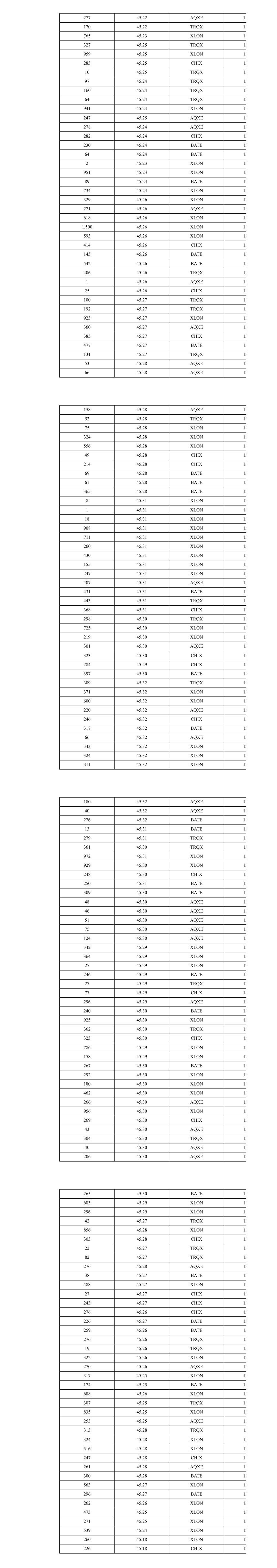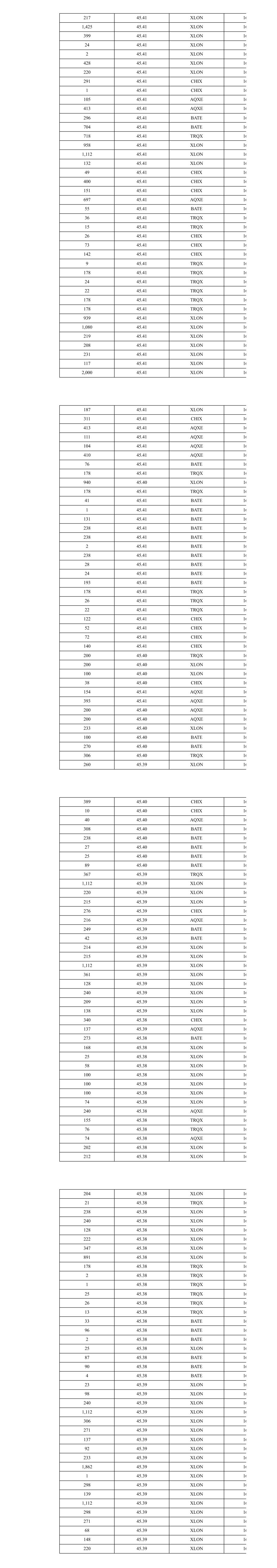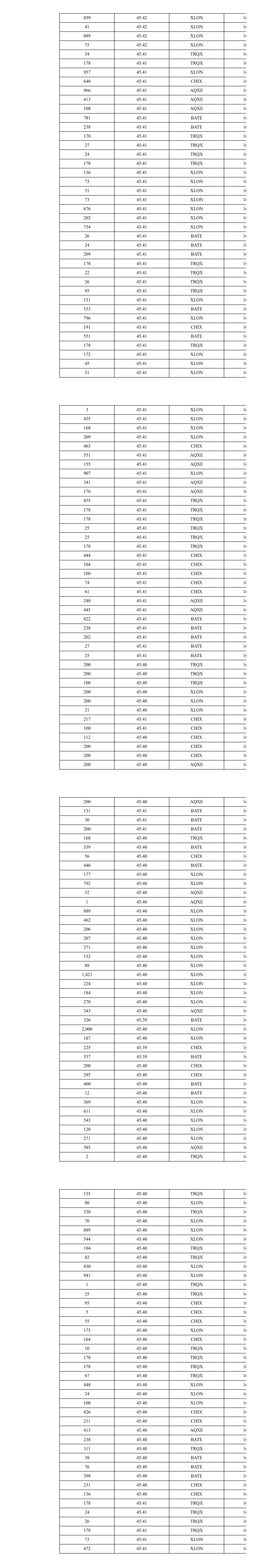151 45.32 XLON 16 253 45.31 TRQX 16 963 45.31 XLON 16 279 45.31 CHIX 16 607 45.31 AQXE 16 335 45.31 BATE 16 514 45.32 BATE 16 963 45.32 XLON 16 99 45.32 XLON 16 369 45.32 XLON 16 889 45.32 XLON 16 382 45.32 CHIX 16 85 45.32 AQXE 16 179 45.32 AQXE 16 364 45.34 TRQX 16 373 45.34 TRQX 16 217 45.34 XLON 16 695 45.34 XLON 16 211 45.34 CHIX 16 202 45.34 CHIX 16 186 45.34 CHIX 16 358 45.34 BATE 16 320 45.34 BATE 16 107 45.33 BATE 16 248 45.33 BATE 16 352 45.33 BATE 16 144 45.35 CHIX 16 62 45.35 CHIX 16 188 45.35 CHIX 16 32 45.35 CHIX 16 99 45.35 CHIX 16 57 45.35 BATE 16 327 45.35 BATE 16 704 45.35 XLON 16 239 45.35 XLON 16 889 45.35 XLON 16 119 45.35 XLON 16 371 45.35 XLON 16 138 45.35 XLON 16 312 45.35 XLON 16 221 45.35 XLON 16 137 45.35 XLON 16 293 45.34 CHIX 16 203 45.34 CHIX 16 612 45.35 AQXE 16 103 45.35 XLON 16 196 45.35 XLON 16 207 45.35 XLON 16 889 45.35 XLON 16 371 45.35 XLON 16 421 45.35 XLON 16 135 45.35 XLON 16 889 45.35 XLON 16 200 45.35 XLON 16 227 45.35 XLON 16 663 45.35 XLON 16 574 45.34 TRQX 16 953 45.34 XLON 16 69 45.34 AQXE 16 345 45.34 BATE 16 321 45.34 AQXE 16 561 45.33 CHIX 16 307 45.33 BATE 16 110 45.35 XLON 16 889 45.35 XLON 16 134 45.35 XLON 16 300 45.35 CHIX 16 20 45.35 TRQX 16 927 45.35 XLON 16 446 45.35 AQXE 16 19 45.35 BATE 16 271 45.35 BATE 16 327 45.35 TRQX 16 77 45.35 TRQX 16 96 45.35 TRQX 16 35 45.35 TRQX 16 17 45.35 TRQX 16 4 45.35 TRQX 16 239 45.35 XLON 16 303 45.35 XLON 16 255 45.35 XLON 16 6 45.35 TRQX 16 889 45.35 XLON 16 213 45.35 XLON 16 141 45.35 XLON 16 452 45.35 BATE 16 30 45.35 BATE 16 298 45.35 TRQX 16 965 45.35 XLON 16 870 45.35 XLON 16 373 45.35 TRQX 16 701 45.35 AQXE 16 1 45.34 AQXE 16 227 45.34 XLON 16 741 45.34 XLON 16 209 45.34 CHIX 16 80 45.34 CHIX 16 301 45.34 BATE 16 111 45.33 BATE 16 26 45.35 CHIX 16 227 45.35 CHIX 16 196 45.35 BATE 16 50 45.35 BATE 16 398 45.35 XLON 16 242 45.35 XLON 16 357 45.35 TRQX 16 634 45.35 XLON 16 2 45.35 AQXE 16 8 45.35 AQXE 16 1 45.35 AQXE 16 380 45.35 AQXE 16 70 45.34 BATE 16 177 45.34 BATE 16 246 45.33 BATE 16 247 45.34 CHIX 16 320 45.35 CHIX 16 247 45.35 BATE 16 239 45.35 TRQX 16 602 45.35 XLON 16 307 45.35 XLON 16 770 45.35 XLON 16 141 45.35 AQXE 16 3 45.35 AQXE 16 250 45.35 AQXE 16 68 45.39 XLON 16 860 45.39 XLON 16 347 45.39 XLON 16 158 45.40 XLON 16 231 45.40 XLON 16 1,798 45.40 XLON 16 44 45.40 XLON 16 233 45.40 XLON 16 225 45.40 XLON 16 123 45.40 XLON 16 889 45.40 XLON 16 312 45.40 XLON 16 236 45.40 XLON 16 228 45.40 XLON 16 214 45.40 XLON 16 185 45.40 XLON 16 949 45.40 XLON 16 216 45.40 XLON 16 248 45.40 XLON 16 141 45.40 TRQX 16 26 45.40 TRQX 16 23 45.40 TRQX 16 178 45.40 TRQX 16 178 45.40 TRQX 16 27 45.40 TRQX 16 24 45.40 TRQX 16 178 45.40 TRQX 16 23 45.40 TRQX 16 26 45.40 TRQX 16 44 45.41 CHIX 16 313 45.41 CHIX 16 131 45.41 TRQX 16 27 45.41 BATE 16 230 45.42 XLON 16 209 45.42 XLON 16 889 45.42 XLON 16