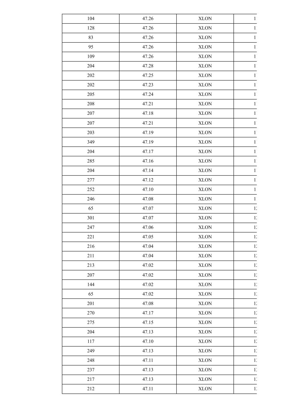 104 47.26 XLON 11 128 47.26 XLON 11 83 47.26 XLON 11 95 47.26 XLON 11 109 47.26 XLON 11 204 47.28 XLON 11 202 47.25 XLON 11 202 47.23 XLON 11 205 47.24 XLON 11 208 47.21 XLON 11 207 47.18 XLON 11 207 47.21 XLON 11 203 47.19 XLON 11 349 47.19 XLON 11 204 47.17 XLON 11 285 47.16 XLON 11 204 47.14 XLON 11 277 47.12 XLON 11 252 47.10 XLON 11 246 47.08 XLON 11 65 47.07 XLON 12 301 47.07 XLON 12 247 47.06 XLON 12 221 47.05 XLON 12 216 47.04 XLON 12 211 47.04 XLON 12 213 47.02 XLON 12 207 47.02 XLON 12 144 47.02 XLON 12 65 47.02 XLON 12 201 47.08 XLON 12 270 47.17 XLON 12 275 47.15 XLON 12 204 47.13 XLON 12 117 47.10 XLON 12 249 47.13 XLON 13 248 47.11 XLON 13 237 47.13 XLON 13 217 47.13 XLON 13 212 47.11 XLON 13