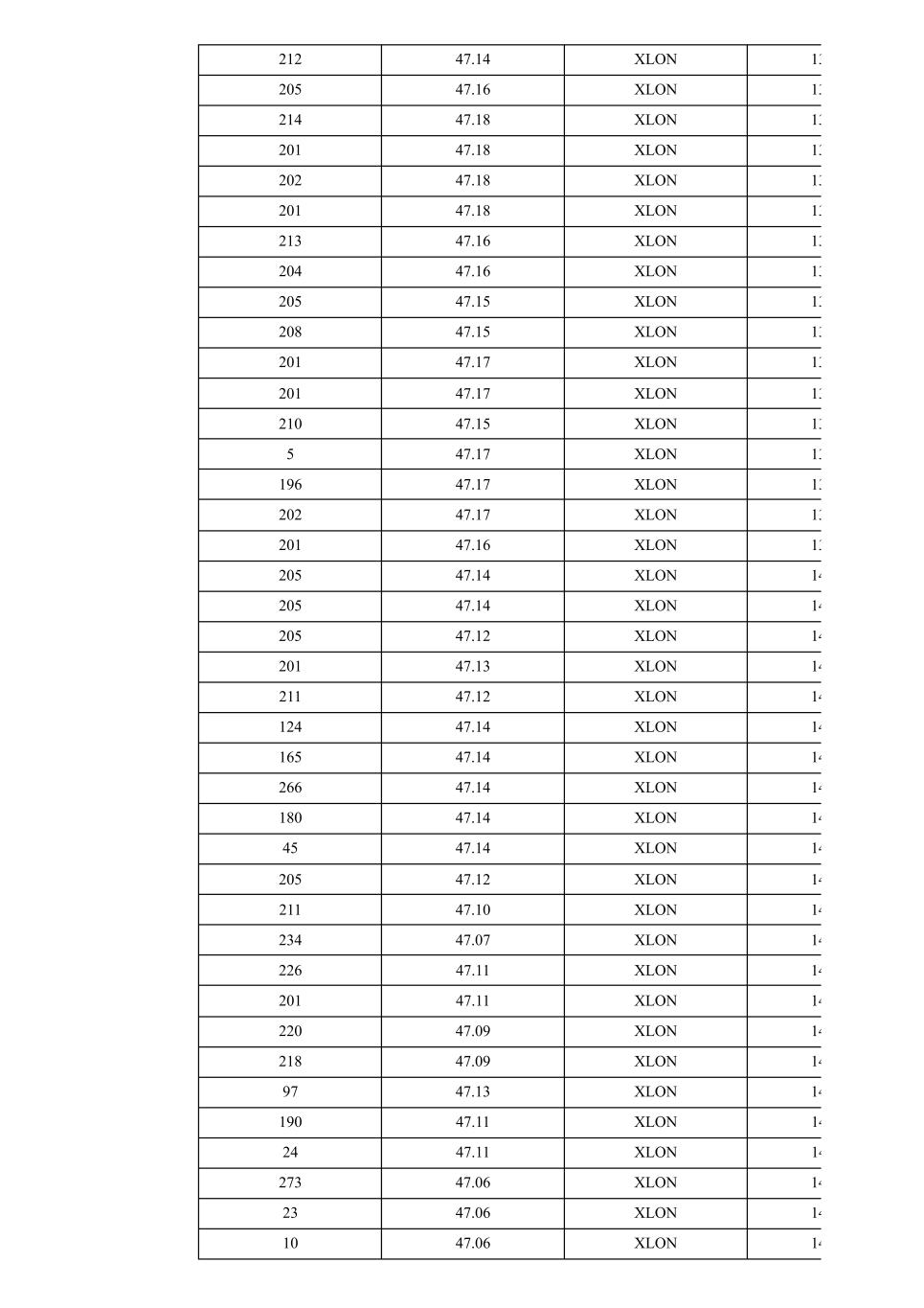 212 47.14 XLON 13 205 47.16 XLON 13 214 47.18 XLON 13 201 47.18 XLON 13 202 47.18 XLON 13 201 47.18 XLON 13 213 47.16 XLON 13 204 47.16 XLON 13 205 47.15 XLON 13 208 47.15 XLON 13 201 47.17 XLON 13 201 47.17 XLON 13 210 47.15 XLON 13 5 47.17 XLON 13 196 47.17 XLON 13 202 47.17 XLON 13 201 47.16 XLON 13 205 47.14 XLON 14 205 47.14 XLON 14 205 47.12 XLON 14 201 47.13 XLON 14 211 47.12 XLON 14 124 47.14 XLON 14 165 47.14 XLON 14 266 47.14 XLON 14 180 47.14 XLON 14 45 47.14 XLON 14 205 47.12 XLON 14 211 47.10 XLON 14 234 47.07 XLON 14 226 47.11 XLON 14 201 47.11 XLON 14 220 47.09 XLON 14 218 47.09 XLON 14 97 47.13 XLON 14 190 47.11 XLON 14 24 47.11 XLON 14 273 47.06 XLON 14 23 47.06 XLON 14 10 47.06 XLON 14