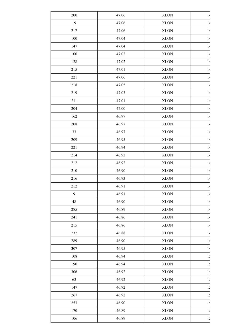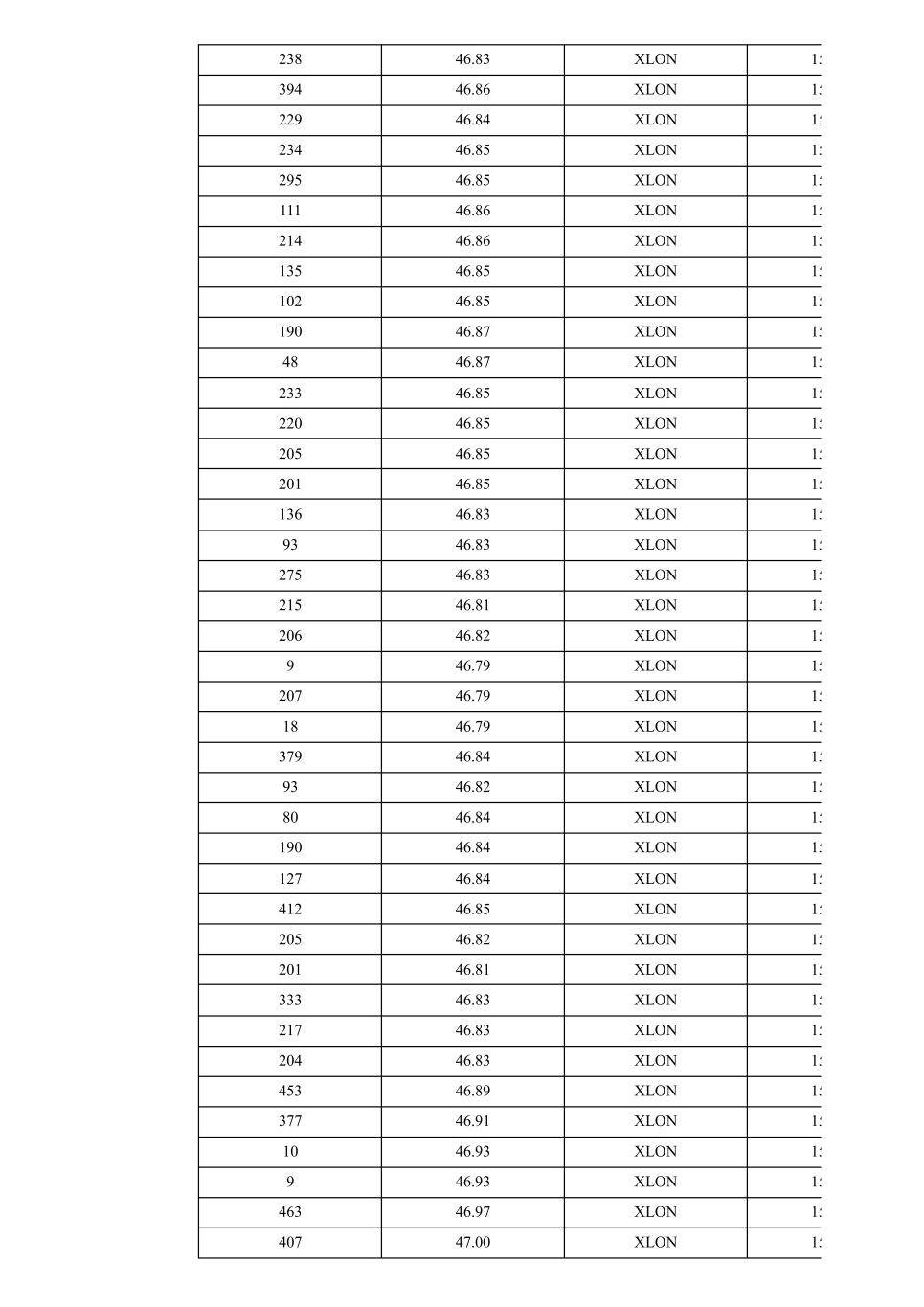200 47.06 XLON 14 19 47.06 XLON 14 217 47.06 XLON 14 100 47.04 XLON 14 147 47.04 XLON 14 100 47.02 XLON 14 128 47.02 XLON 14 215 47.01 XLON 14 221 47.06 XLON 14 218 47.05 XLON 14 219 47.03 XLON 14 211 47.01 XLON 14 204 47.00 XLON 14 162 46.97 XLON 14 208 46.97 XLON 14 33 46.97 XLON 14 209 46.95 XLON 14 221 46.94 XLON 14 214 46.92 XLON 14 212 46.92 XLON 14 210 46.90 XLON 14 216 46.93 XLON 14 212 46.91 XLON 14 9 46.91 XLON 14 48 46.90 XLON 14 285 46.89 XLON 14 241 46.86 XLON 14 215 46.86 XLON 14 232 46.88 XLON 14 289 46.90 XLON 14 307 46.95 XLON 14 108 46.94 XLON 15 190 46.94 XLON 15 306 46.92 XLON 15 63 46.92 XLON 15 147 46.92 XLON 15 267 46.92 XLON 15 253 46.90 XLON 15 170 46.89 XLON 15 106 46.89 XLON 15