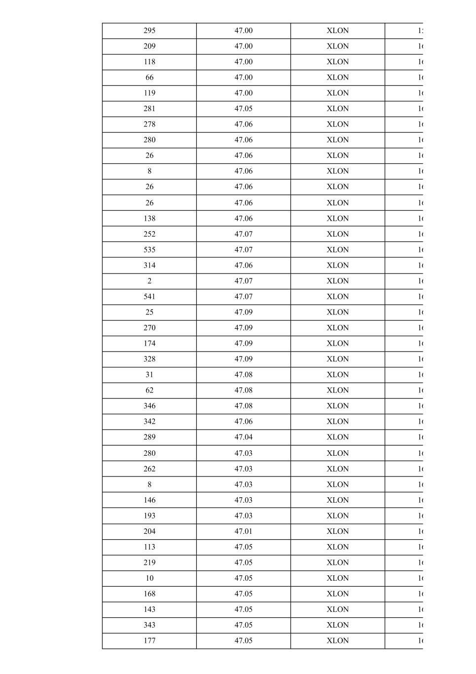 295 47.00 XLON 15 209 47.00 XLON 16 118 47.00 XLON 16 66 47.00 XLON 16 119 47.00 XLON 16 281 47.05 XLON 16 278 47.06 XLON 16 280 47.06 XLON 16 26 47.06 XLON 16 8 47.06 XLON 16 26 47.06 XLON 16 26 47.06 XLON 16 138 47.06 XLON 16 252 47.07 XLON 16 535 47.07 XLON 16 314 47.06 XLON 16 2 47.07 XLON 16 541 47.07 XLON 16 25 47.09 XLON 16 270 47.09 XLON 16 174 47.09 XLON 16 328 47.09 XLON 16 31 47.08 XLON 16 62 47.08 XLON 16 346 47.08 XLON 16 342 47.06 XLON 16 289 47.04 XLON 16 280 47.03 XLON 16 262 47.03 XLON 16 8 47.03 XLON 16 146 47.03 XLON 16 193 47.03 XLON 16 204 47.01 XLON 16 113 47.05 XLON 16 219 47.05 XLON 16 10 47.05 XLON 16 168 47.05 XLON 16 143 47.05 XLON 16 343 47.05 XLON 16 177 47.05 XLON 16