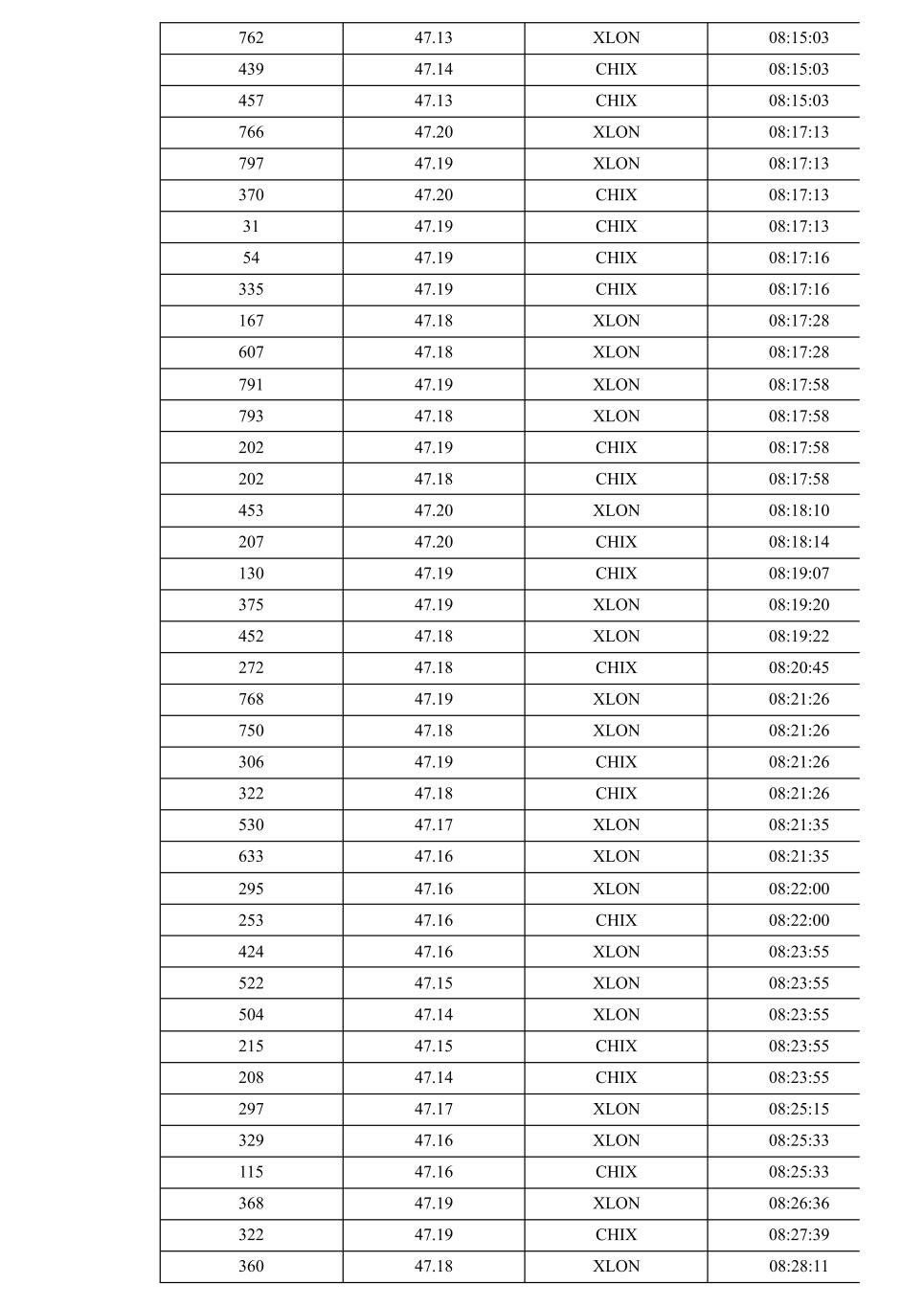 762 47.13 XLON 08:15:03 439 47.14 CHIX 08:15:03 457 47.13 CHIX 08:15:03 766 47.20 XLON 08:17:13 797 47.19 XLON 08:17:13 370 47.20 CHIX 08:17:13 31 47.19 CHIX 08:17:13 54 47.19 CHIX 08:17:16 335 47.19 CHIX 08:17:16 167 47.18 XLON 08:17:28 607 47.18 XLON 08:17:28 791 47.19 XLON 08:17:58 793 47.18 XLON 08:17:58 202 47.19 CHIX 08:17:58 202 47.18 CHIX 08:17:58 453 47.20 XLON 08:18:10 207 47.20 CHIX 08:18:14 130 47.19 CHIX 08:19:07 375 47.19 XLON 08:19:20 452 47.18 XLON 08:19:22 272 47.18 CHIX 08:20:45 768 47.19 XLON 08:21:26 750 47.18 XLON 08:21:26 306 47.19 CHIX 08:21:26 322 47.18 CHIX 08:21:26 530 47.17 XLON 08:21:35 633 47.16 XLON 08:21:35 295 47.16 XLON 08:22:00 253 47.16 CHIX 08:22:00 424 47.16 XLON 08:23:55 522 47.15 XLON 08:23:55 504 47.14 XLON 08:23:55 215 47.15 CHIX 08:23:55 208 47.14 CHIX 08:23:55 297 47.17 XLON 08:25:15 329 47.16 XLON 08:25:33 115 47.16 CHIX 08:25:33 368 47.19 XLON 08:26:36 322 47.19 CHIX 08:27:39 360 47.18 XLON 08:28:11