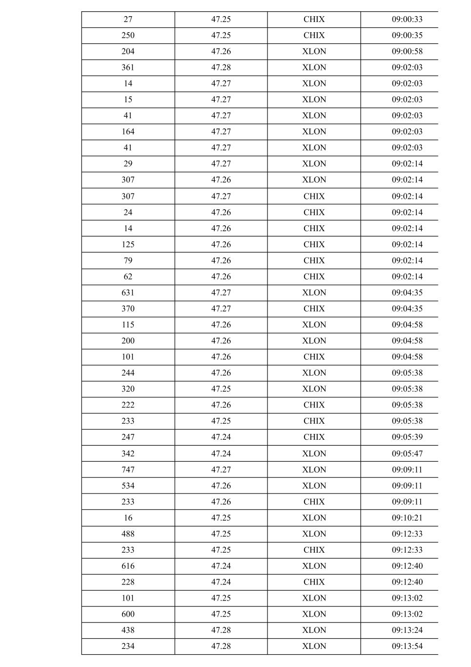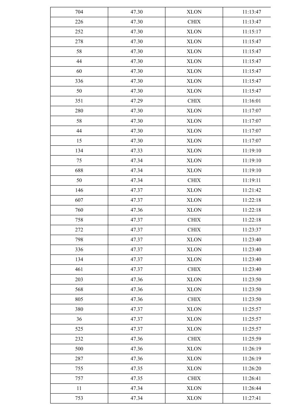 296 47.33 XLON 11:27:41 95 47.33 XLON 11:27:41 256 47.34 CHIX 11:27:41 245 47.32 XLON 11:27:42 203 47.33 CHIX 11:27:42 232 47.31 XLON 11:31:34 202 47.31 CHIX 11:31:37 803 47.32 XLON 11:33:42 449 47.32 CHIX 11:33:42 750 47.31 XLON 11:33:43 399 47.31 CHIX 11:33:43 466 47.32 XLON 11:33:56 442 47.33 XLON 11:38:55 378 47.33 XLON 11:38:55 483 47.32 XLON 11:39:21 255 47.32 CHIX 11:39:21 428 47.31 XLON 11:40:37 243 47.31 CHIX 11:40:37 342 47.30 XLON 11:41:05 465 47.30 XLON 11:41:05 212 47.30 CHIX 11:41:05 14 47.30 CHIX 11:41:05 626 47.29 XLON 11:41:06 94 47.29 CHIX 11:41:14 753 47.28 XLON 11:41:46 398 47.29 CHIX 11:41:46 366 47.28 CHIX 11:41:46 226 47.27 XLON 11:41:48 26 47.27 XLON 11:41:48 234 47.27 CHIX 11:41:56 232 47.25 XLON 11:46:12 229 47.25 CHIX 11:46:28 134 47.25 XLON 11:47:47 74 47.25 XLON 11:47:57 932 47.25 XLON 11:48:49 161 47.25 XLON 11:49:57 78 47.24 XLON 11:50:04 145 47.24 XLON 11:50:04 229 47.24 CHIX 11:50:04 304 47.24 XLON 11:53:55