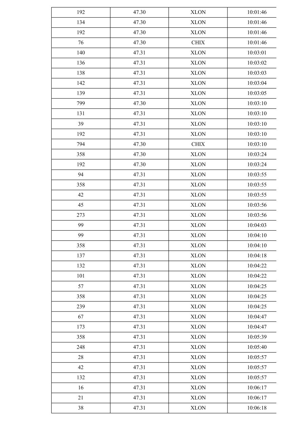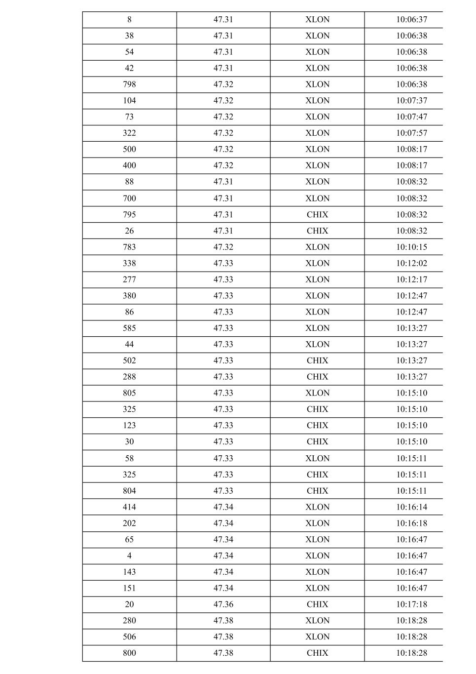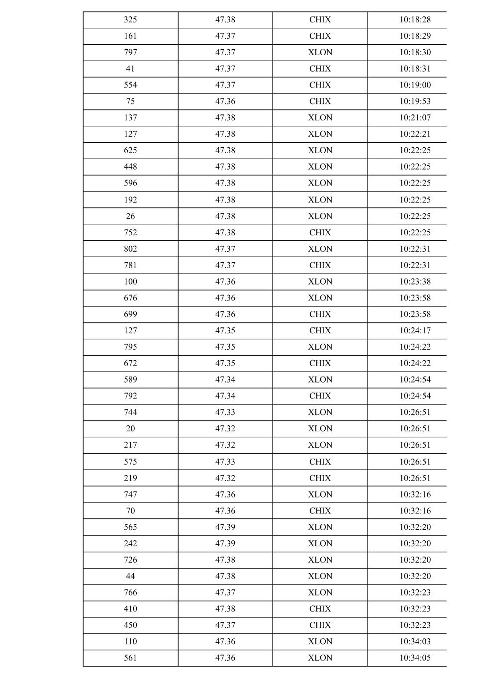 325 47.38 CHIX 10:18:28 161 47.37 CHIX 10:18:29 797 47.37 XLON 10:18:30 41 47.37 CHIX 10:18:31 554 47.37 CHIX 10:19:00 75 47.36 CHIX 10:19:53 137 47.38 XLON 10:21:07 127 47.38 XLON 10:22:21 625 47.38 XLON 10:22:25 448 47.38 XLON 10:22:25 596 47.38 XLON 10:22:25 192 47.38 XLON 10:22:25 26 47.38 XLON 10:22:25 752 47.38 CHIX 10:22:25 802 47.37 XLON 10:22:31 781 47.37 CHIX 10:22:31 100 47.36 XLON 10:23:38 676 47.36 XLON 10:23:58 699 47.36 CHIX 10:23:58 127 47.35 CHIX 10:24:17 795 47.35 XLON 10:24:22 672 47.35 CHIX 10:24:22 589 47.34 XLON 10:24:54 792 47.34 CHIX 10:24:54 744 47.33 XLON 10:26:51 20 47.32 XLON 10:26:51 217 47.32 XLON 10:26:51 575 47.33 CHIX 10:26:51 219 47.32 CHIX 10:26:51 747 47.36 XLON 10:32:16 70 47.36 CHIX 10:32:16 565 47.39 XLON 10:32:20 242 47.39 XLON 10:32:20 726 47.38 XLON 10:32:20 44 47.38 XLON 10:32:20 766 47.37 XLON 10:32:23 410 47.38 CHIX 10:32:23 450 47.37 CHIX 10:32:23 110 47.36 XLON 10:34:03 561 47.36 XLON 10:34:05