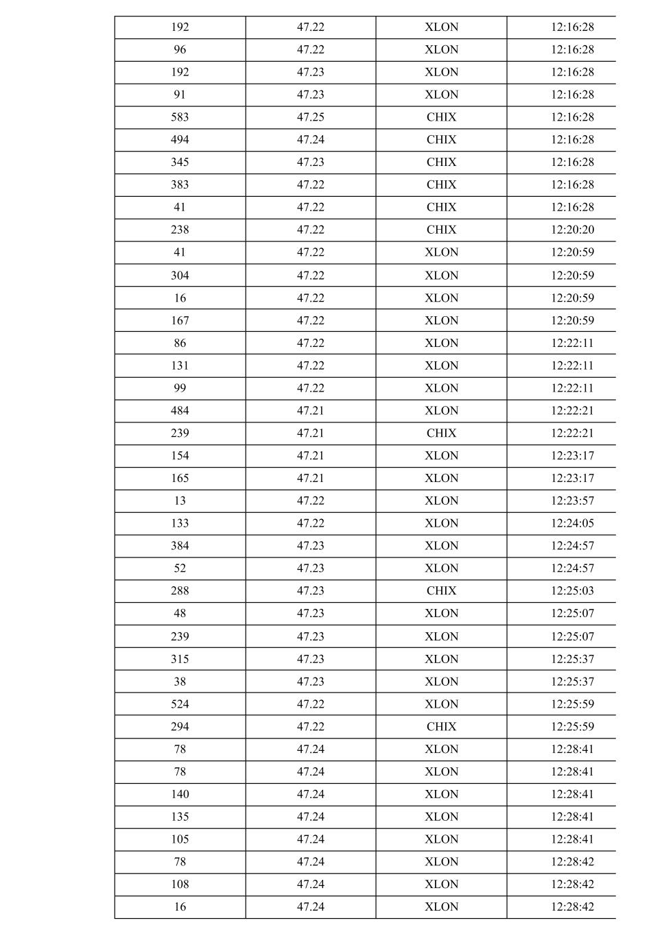 192 47.22 XLON 12:16:28 96 47.22 XLON 12:16:28 192 47.23 XLON 12:16:28 91 47.23 XLON 12:16:28 583 47.25 CHIX 12:16:28 494 47.24 CHIX 12:16:28 345 47.23 CHIX 12:16:28 383 47.22 CHIX 12:16:28 41 47.22 CHIX 12:16:28 238 47.22 CHIX 12:20:20 41 47.22 XLON 12:20:59 304 47.22 XLON 12:20:59 16 47.22 XLON 12:20:59 167 47.22 XLON 12:20:59 86 47.22 XLON 12:22:11 131 47.22 XLON 12:22:11 99 47.22 XLON 12:22:11 484 47.21 XLON 12:22:21 239 47.21 CHIX 12:22:21 154 47.21 XLON 12:23:17 165 47.21 XLON 12:23:17 13 47.22 XLON 12:23:57 133 47.22 XLON 12:24:05 384 47.23 XLON 12:24:57 52 47.23 XLON 12:24:57 288 47.23 CHIX 12:25:03 48 47.23 XLON 12:25:07 239 47.23 XLON 12:25:07 315 47.23 XLON 12:25:37 38 47.23 XLON 12:25:37 524 47.22 XLON 12:25:59 294 47.22 CHIX 12:25:59 78 47.24 XLON 12:28:41 78 47.24 XLON 12:28:41 140 47.24 XLON 12:28:41 135 47.24 XLON 12:28:41 105 47.24 XLON 12:28:41 78 47.24 XLON 12:28:42 108 47.24 XLON 12:28:42 16 47.24 XLON 12:28:42