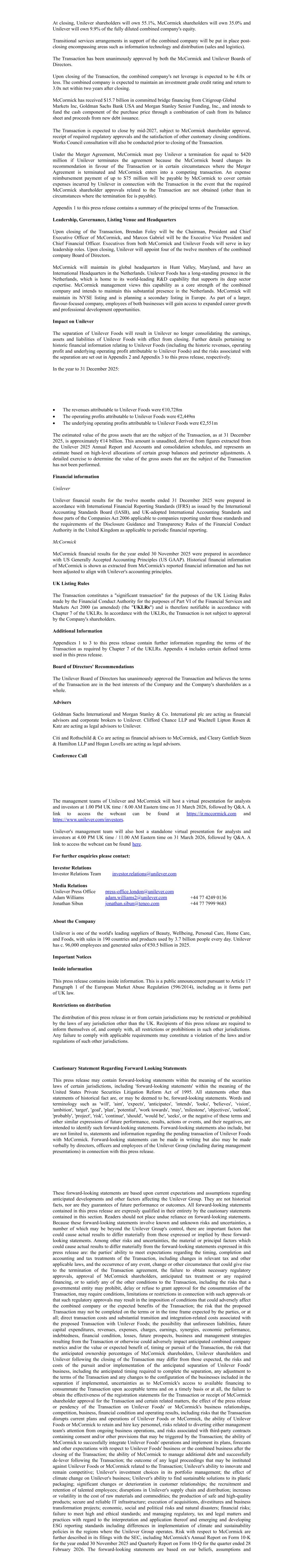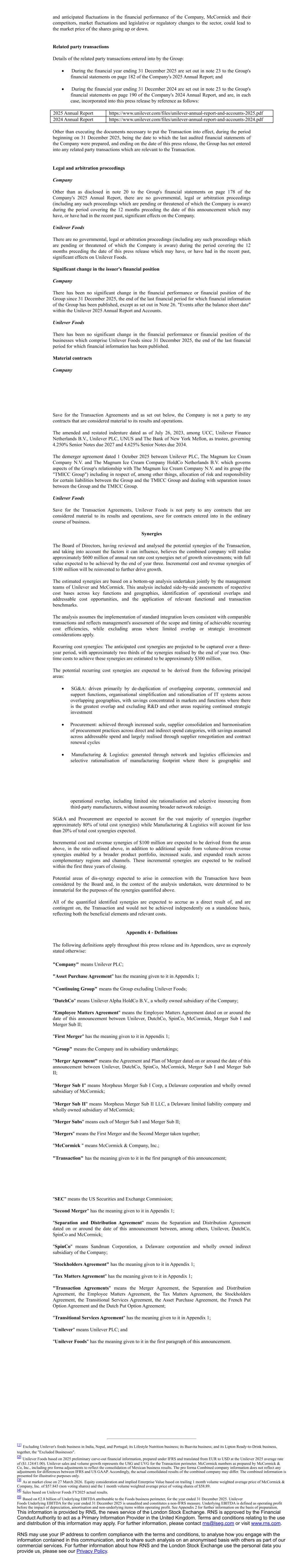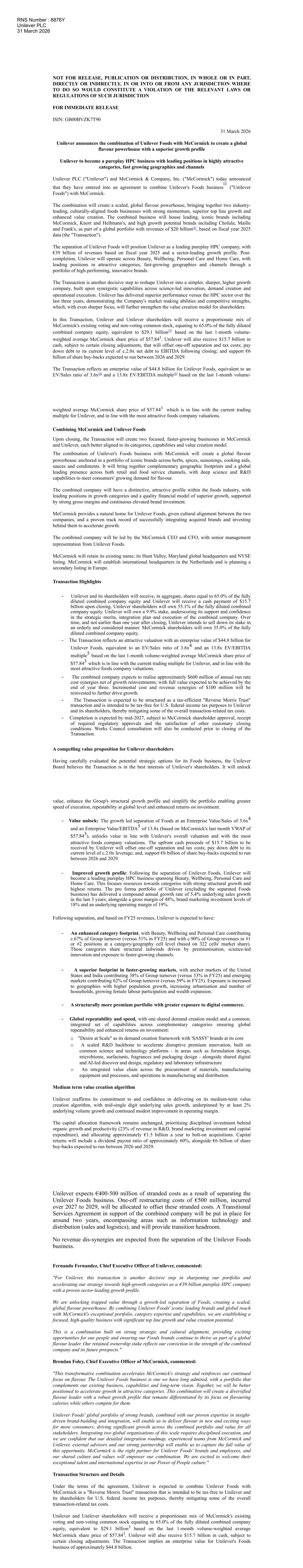 EX-99.1 2 a2026-03x31xunileverfood.htm EX-99.1 a2026-03x31xunileverfood