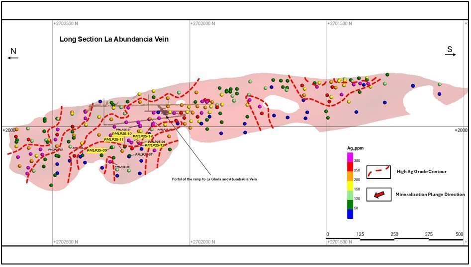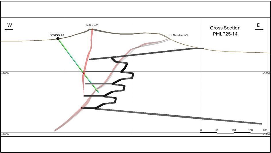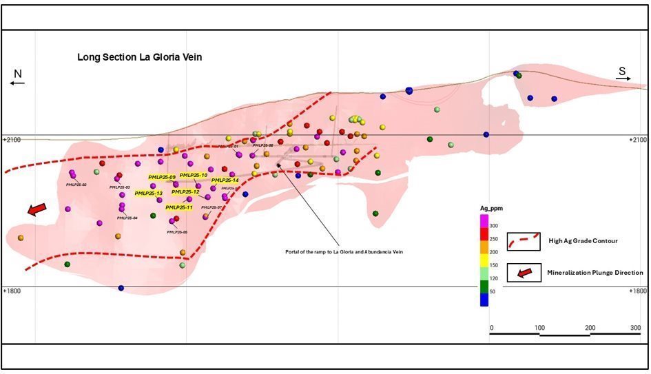 Hole PMLP 25-14 at Gloria: 694 g/t Ag and 0.63 g/t Au over 4.52 metres true width