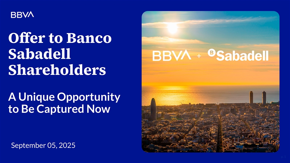 Offer to Banco Sabadell Shareholders A Unique Opportunity to Be Captured Now September 05, 2025 p. 1