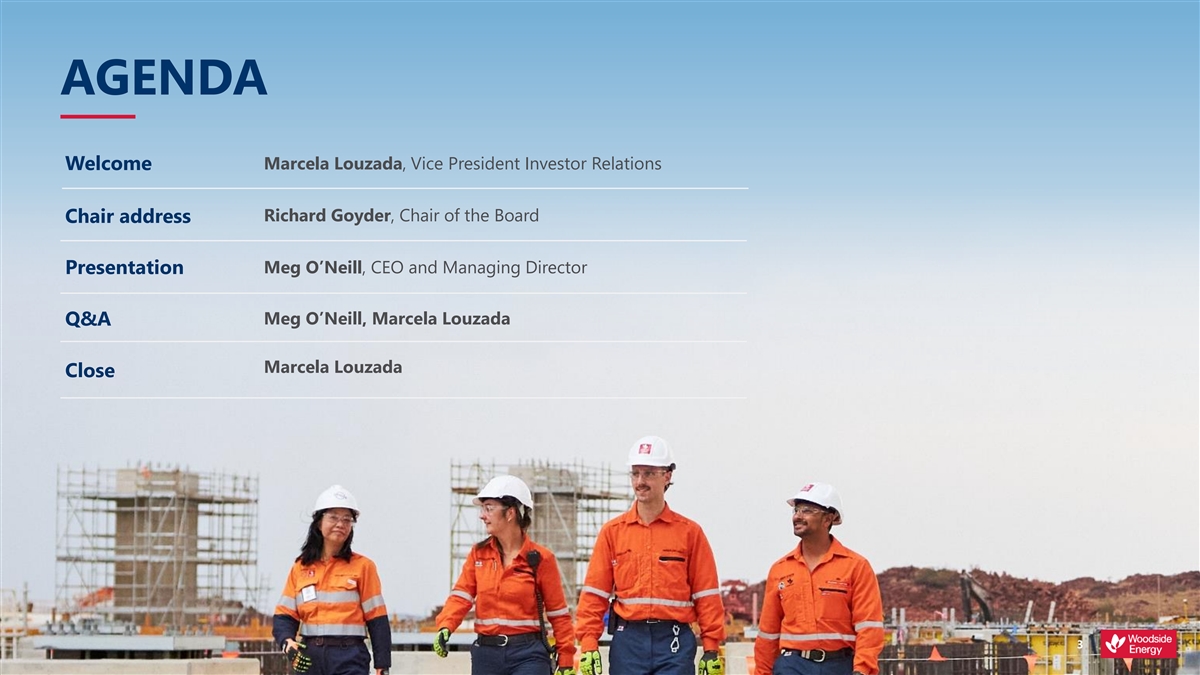 AGENDA Welcome Marcela Louzada, Vice President Investor Relations Richard Goyder, Chair of the Board Chair address Presentation Meg O’Neill, CEO and Managing Director Meg O’Neill, Marcela Louzada Q&A Marcela Louzada Close 3 3
