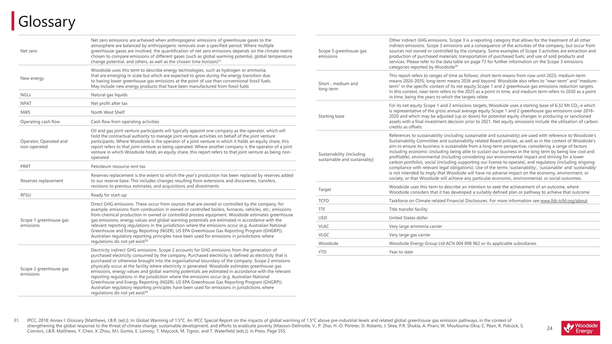 Woodside “greenhouse gas” or “emissions” information reported are net equity Scope 1 greenhouse gas emissions, Scope 2 greenhouse gas emissions, and/or Scope 3 greenhouse gas emissions, unless otherwise stated.