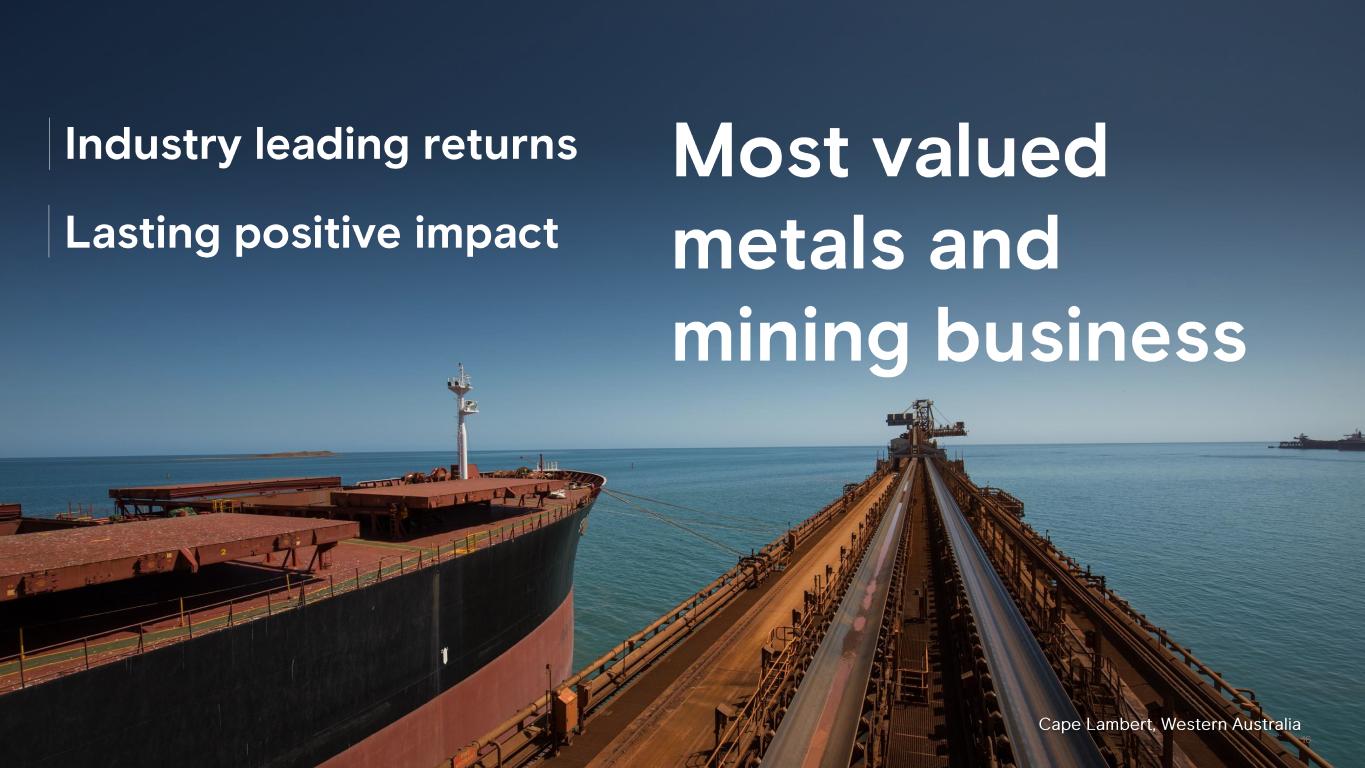16 Industry leading returns Lasting positive impact Most valued metals and mining business Cape Lambert, Western Australia