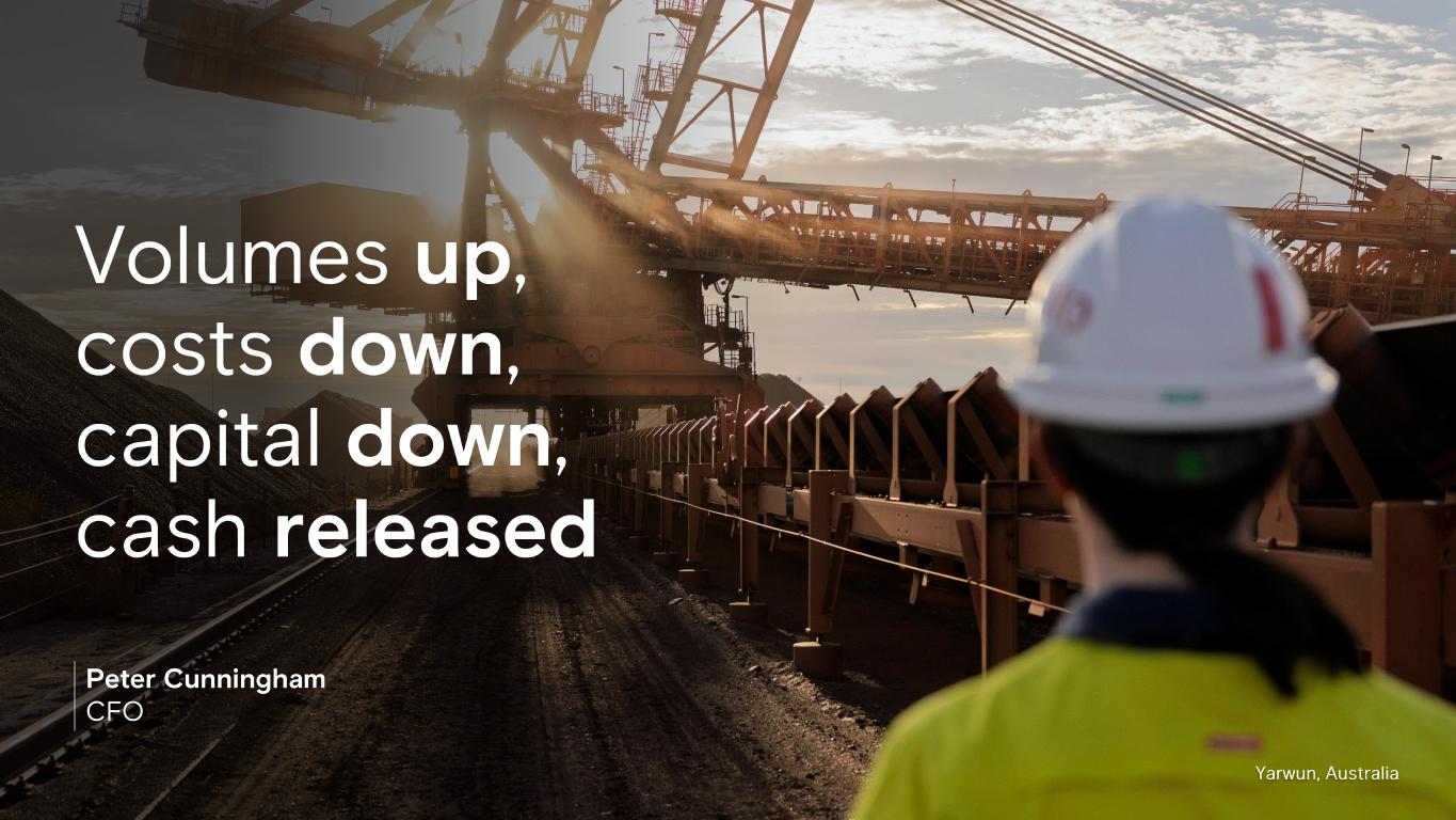 Volumes up , costs down , capital down , cash released Yarwun, Australia Peter Cunningham CFO