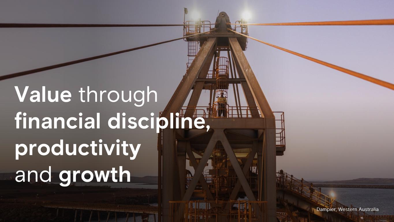 Value through financial discipline, productivity and growth Dampier, Western Australia