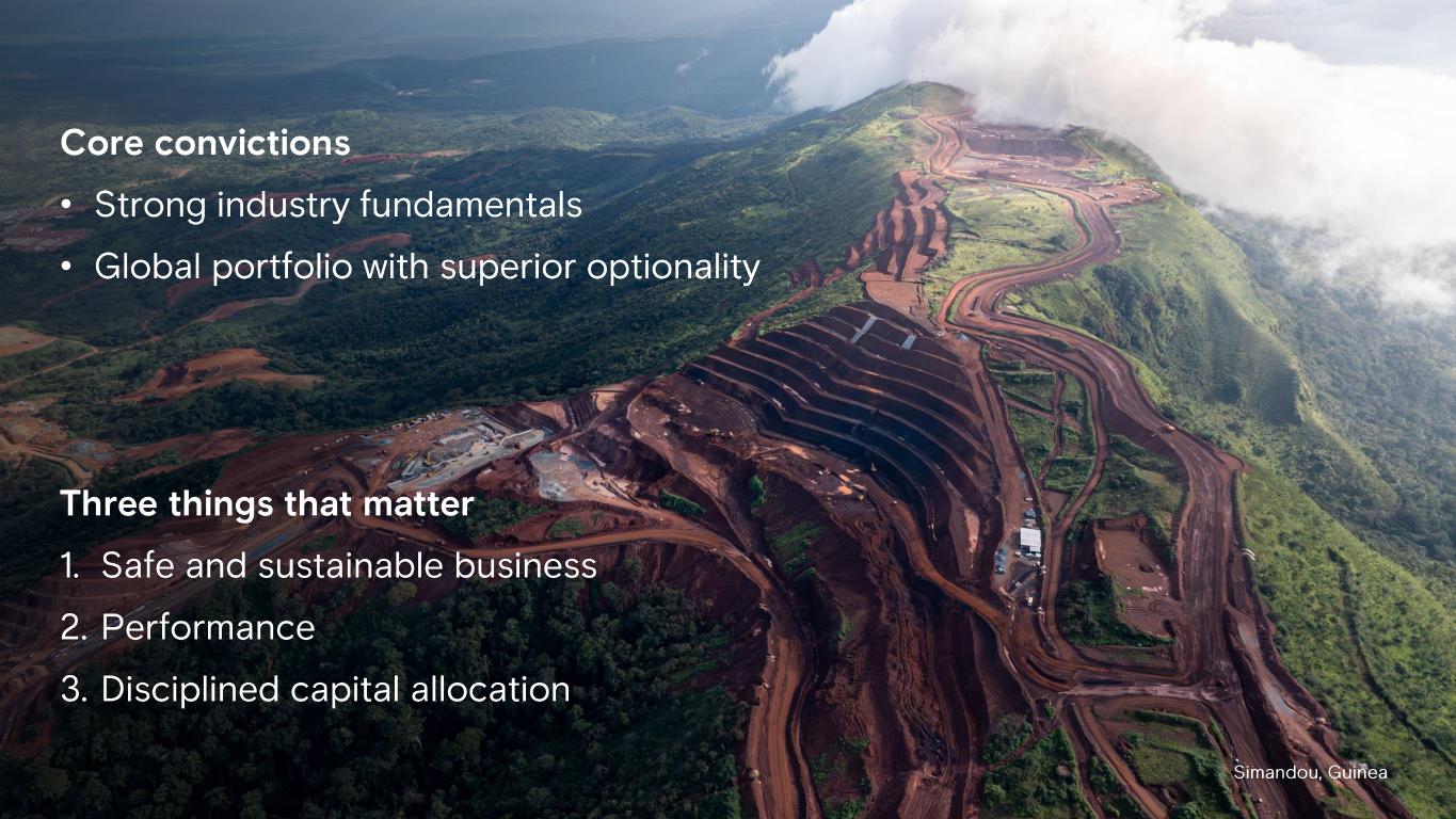 Simandou , Guinea Core convictions • Strong industry fundamentals • Global portfolio with superior optionality Three things that matter 1. Safe and sustainable business 2. Performance 3. Disciplined capital allocation