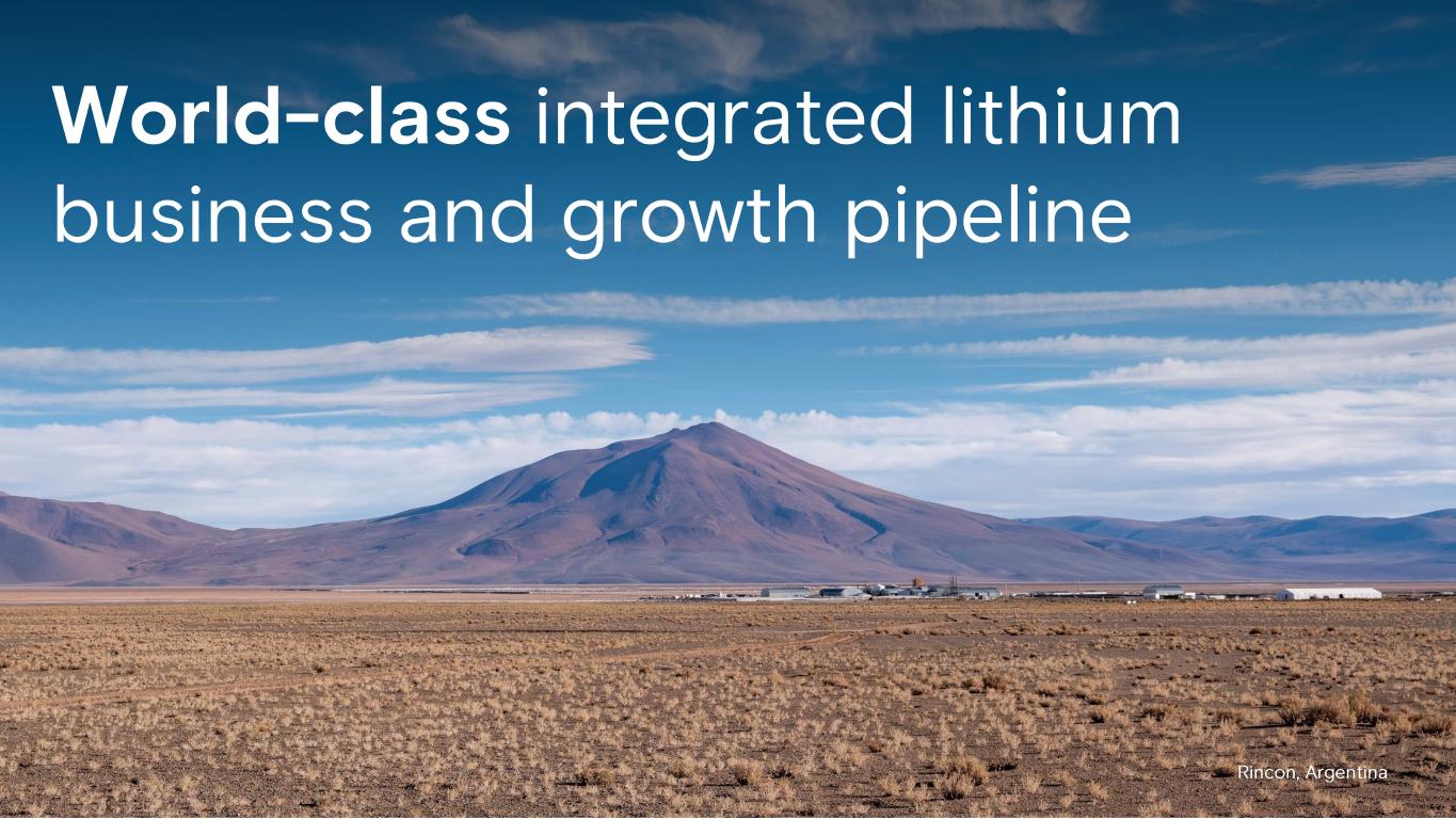 World - class integrated lithium business and growth pipeline Rincon, Argentina