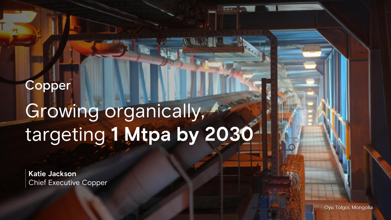 Copper Katie Jackson Chief Executive Copper Growing organically, targeting 1 Mtpa by 2030 Oyu Tolgoi, Mongolia
