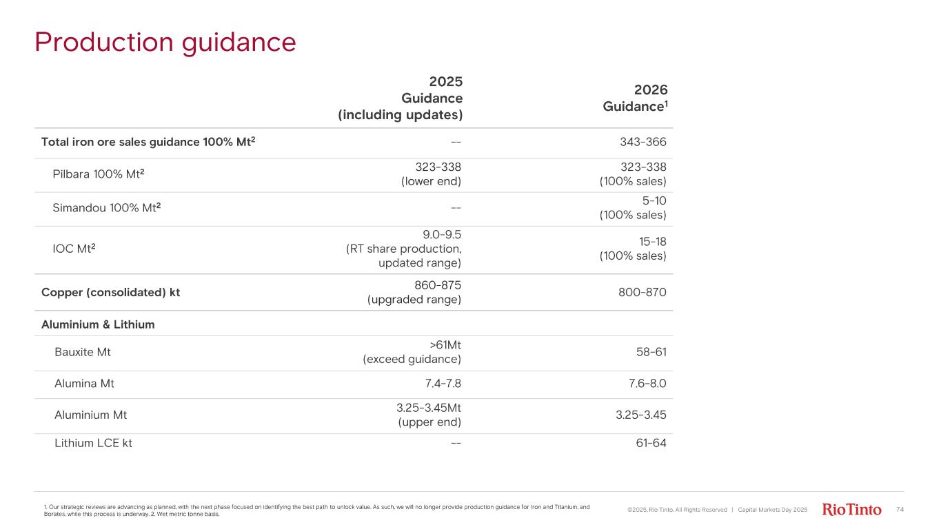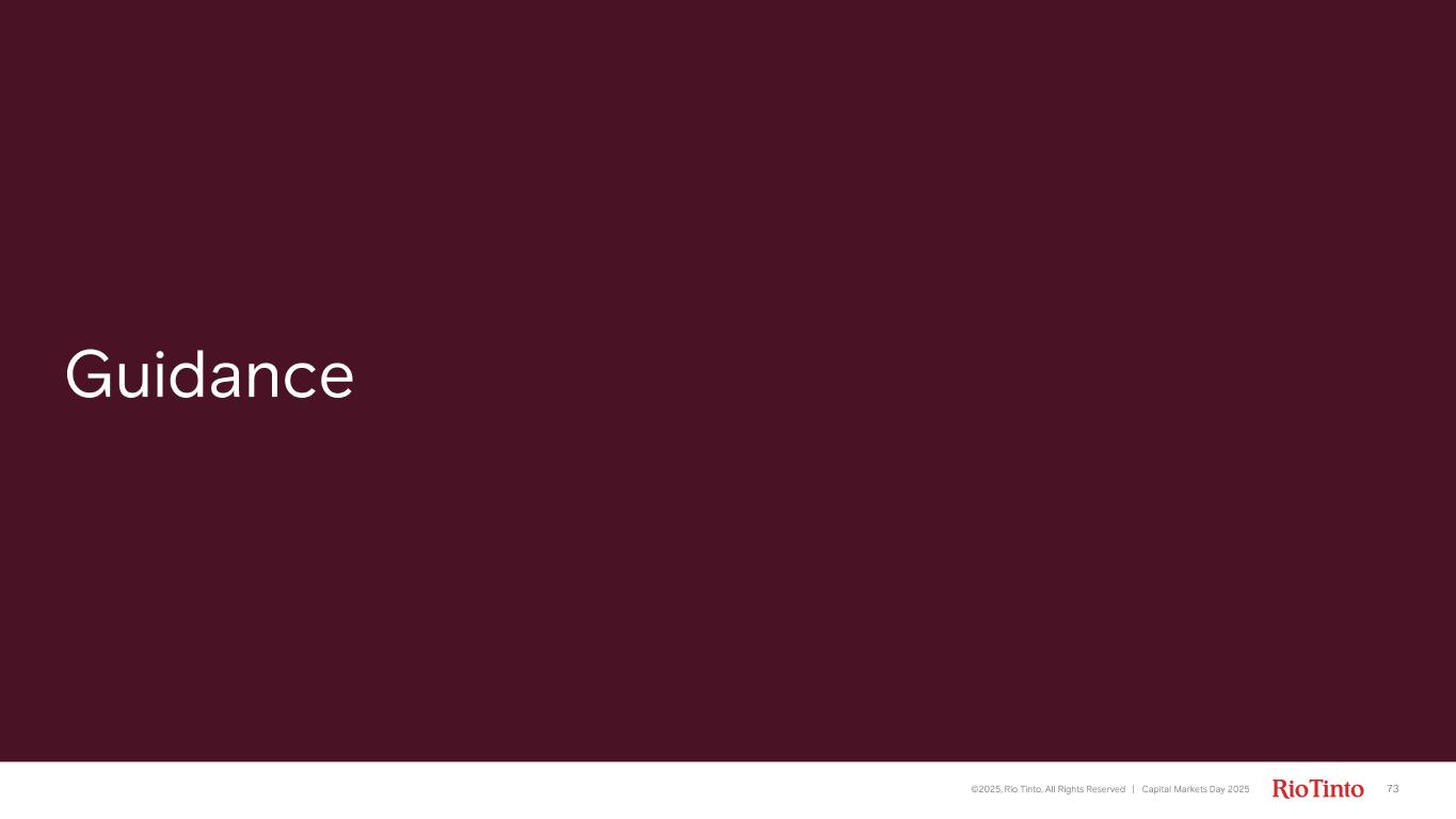 73 Guidance ©2025, Rio Tinto, All Rights Reserved | Capital Markets Day 2025