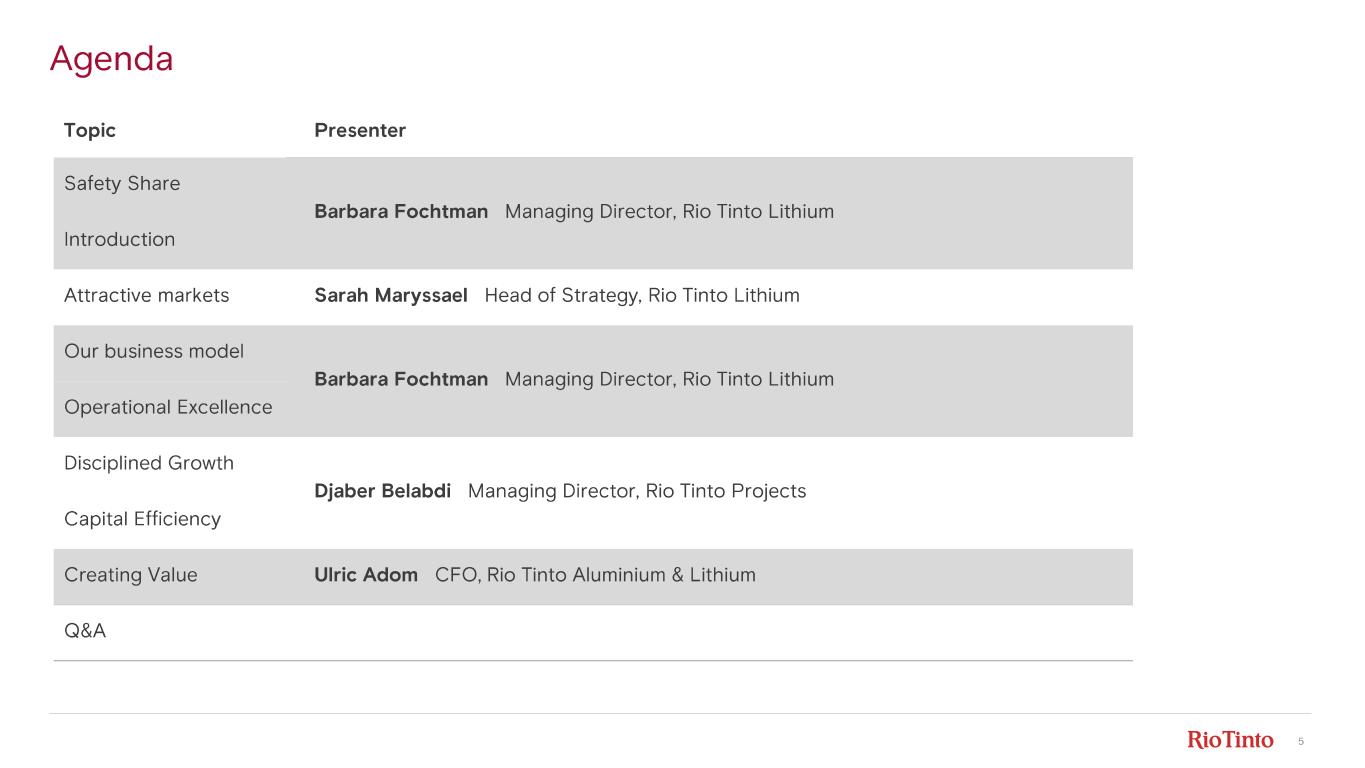 4 Introduction to our Lithium team and business Barbara Fochtman Managing Director, Rio Tinto Lithium Rincon, Argentina