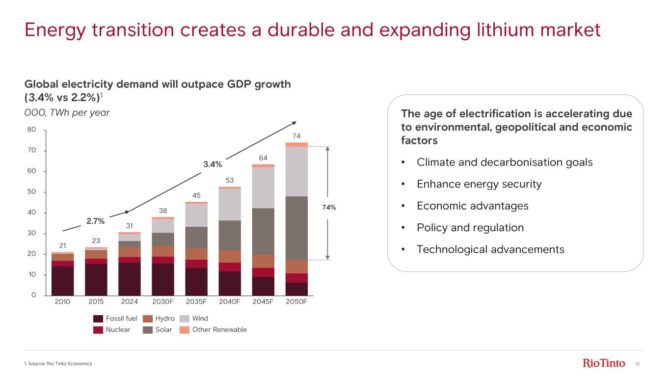 11 Attractive markets Sarah Maryssael Head of Strategy, Rio Tinto Lithium