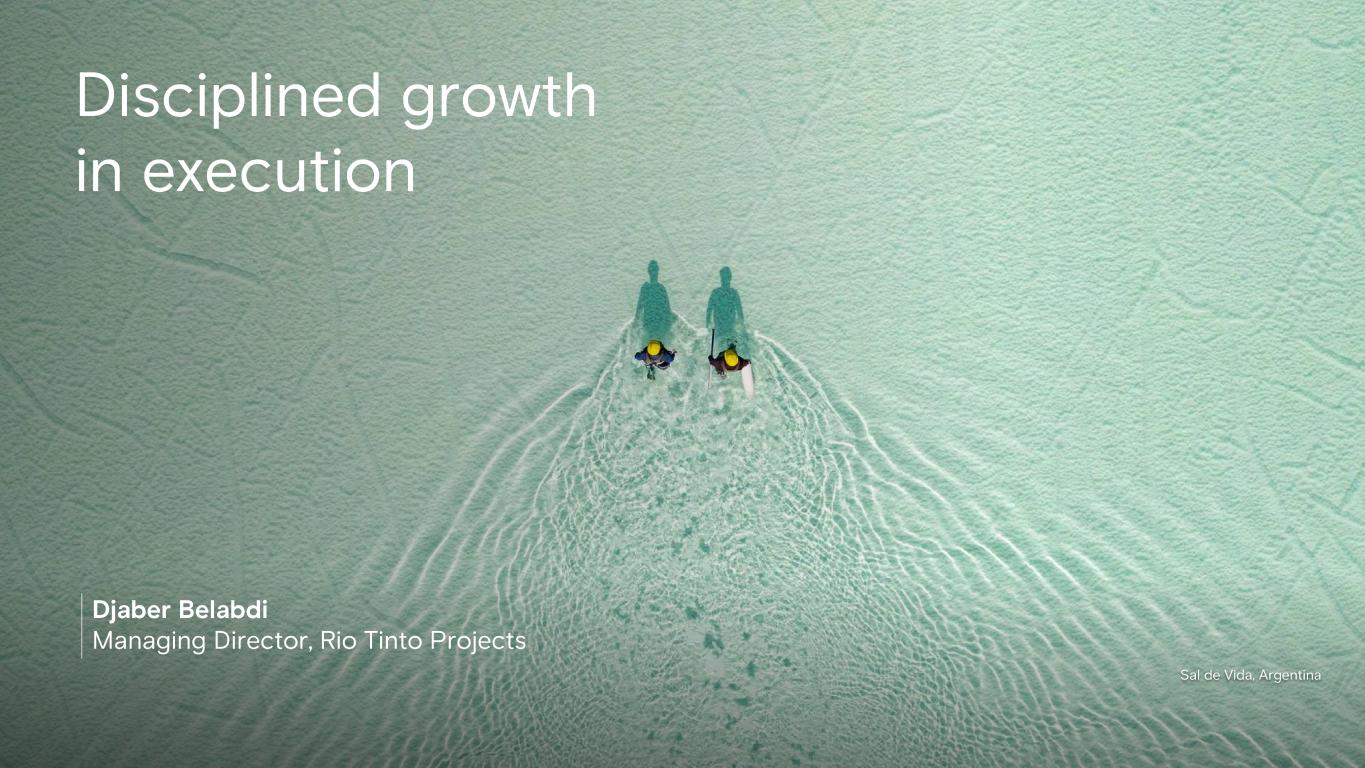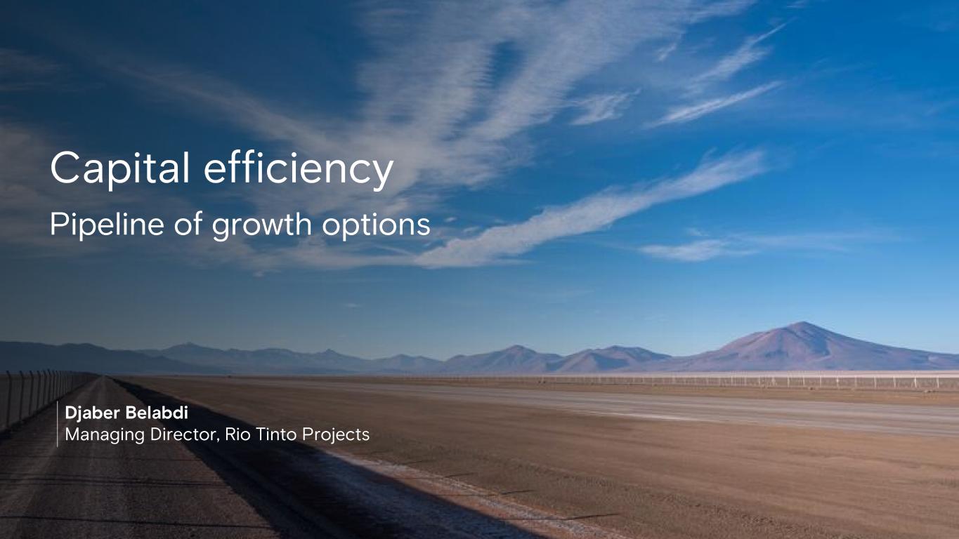 Djaber Belabdi Managing Director, Rio Tinto Projects Capital efficiency Pipeline of growth options