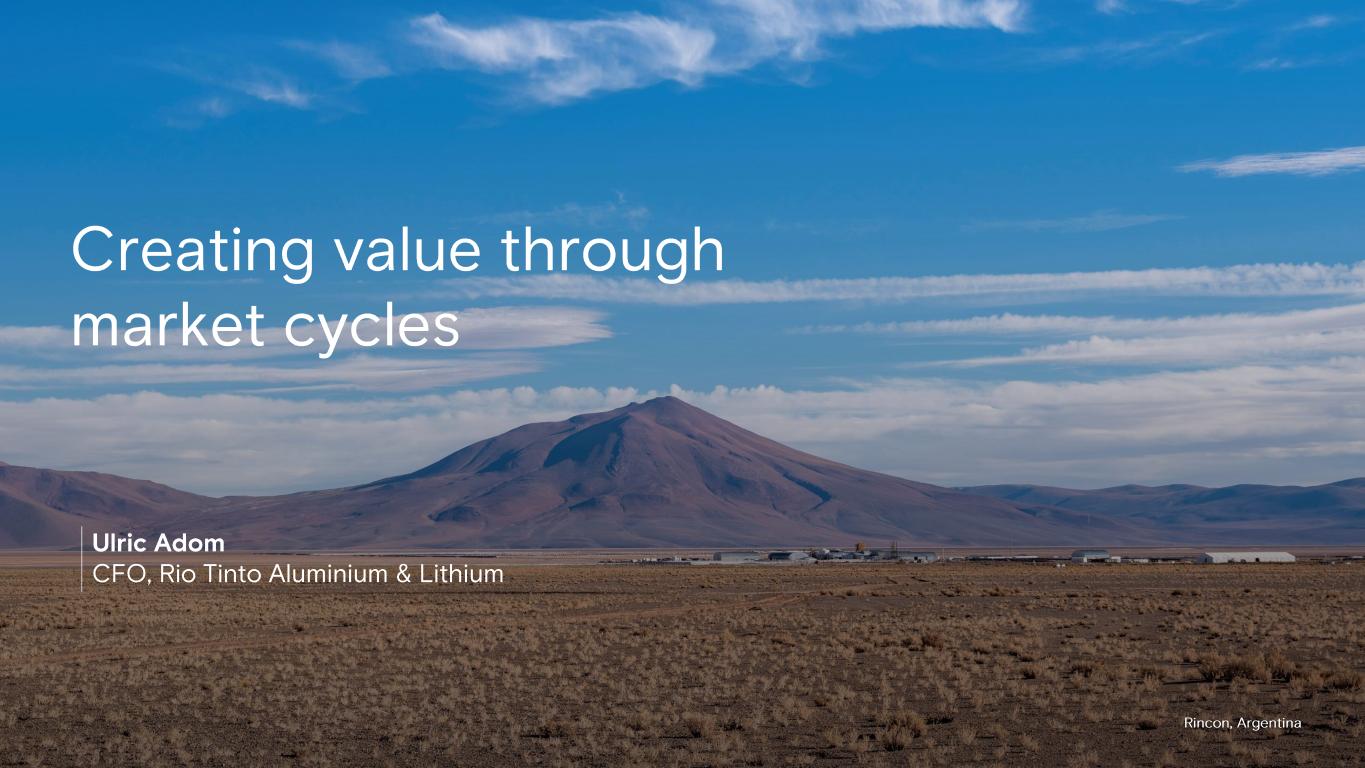 45 Rincon, Argentina Creating value through market cycles Ulric Adom CFO, Rio Tinto Aluminium & Lithium