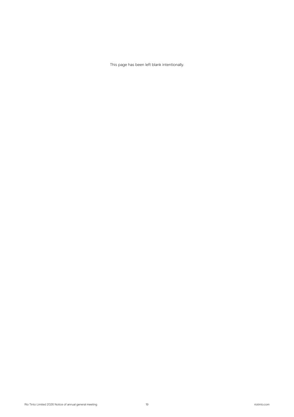 This page has been left blank intentionally. 18Rio Tinto Limited 2026 Notice of annual general meeting riotinto.com