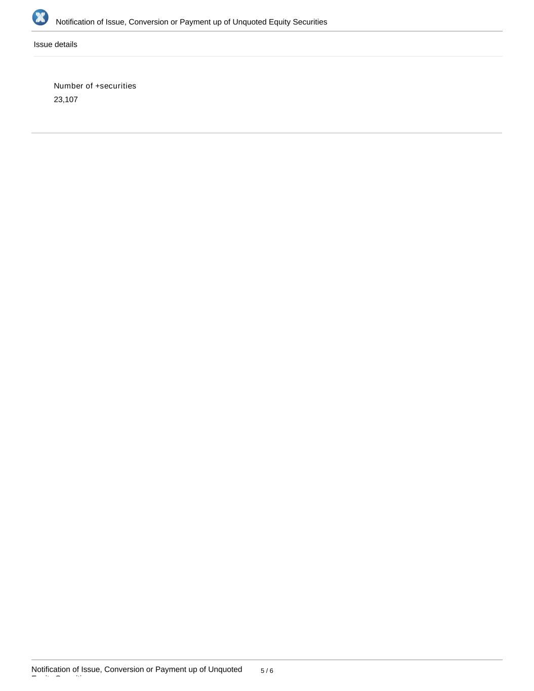Notification of Issue, Conversion or Payment up of Unquoted Equity Securities Notification of Issue, Conversion or Payment up of Unquoted Equity Securities 5 / 6 Issue details Number of +securities 23,107