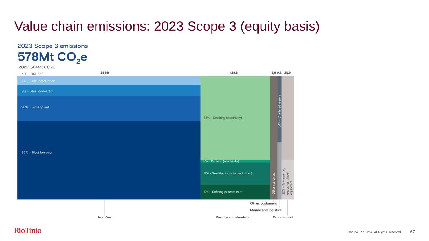 ©2024, Rio Tinto, All Rights Reserved 67 Value chain emissions: 2023 Scope 3 (equity basis)