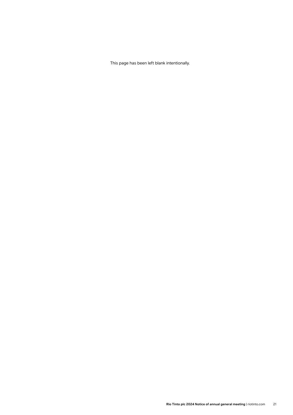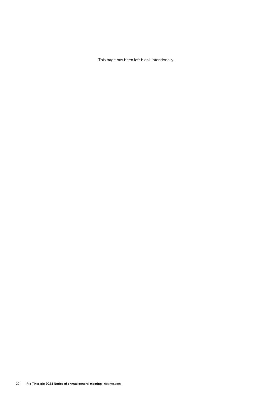 This page has been left blank intentionally. 21Rio Tinto plc 2024 Notice of annual general meeting | riotinto.com