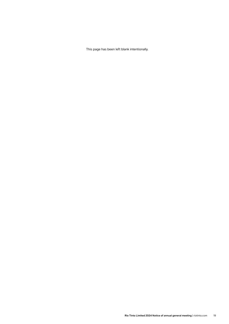 This page has been left blank intentionally. 18 Rio Tinto Limited 2024 Notice of annual general meeting | riotinto.com