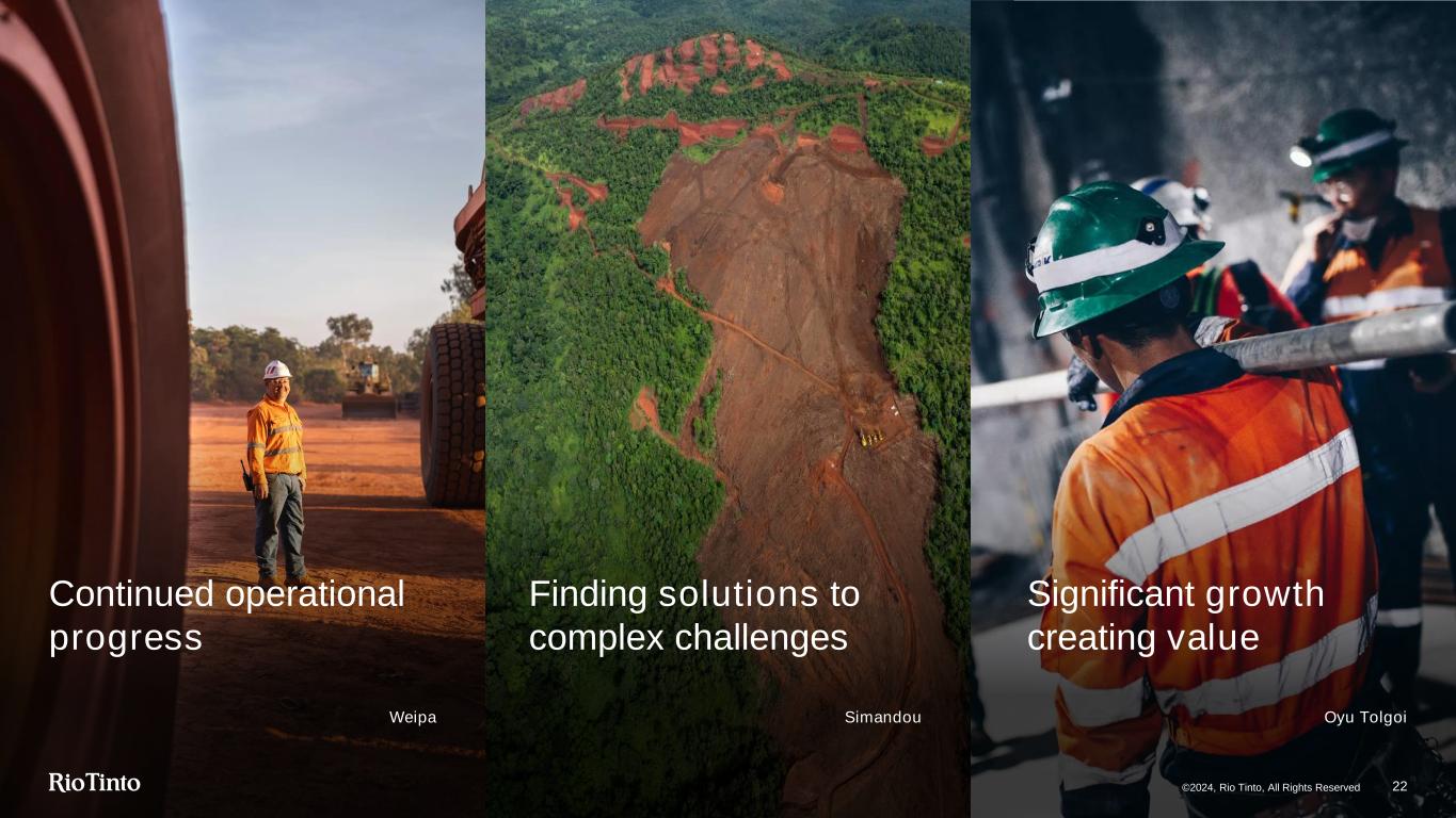 Continued operational progress ©2024, Rio Tinto, All Rights Reserved 22 Weipa Finding solutions to complex challenges Simandou Significant growth creating value Oyu Tolgoi