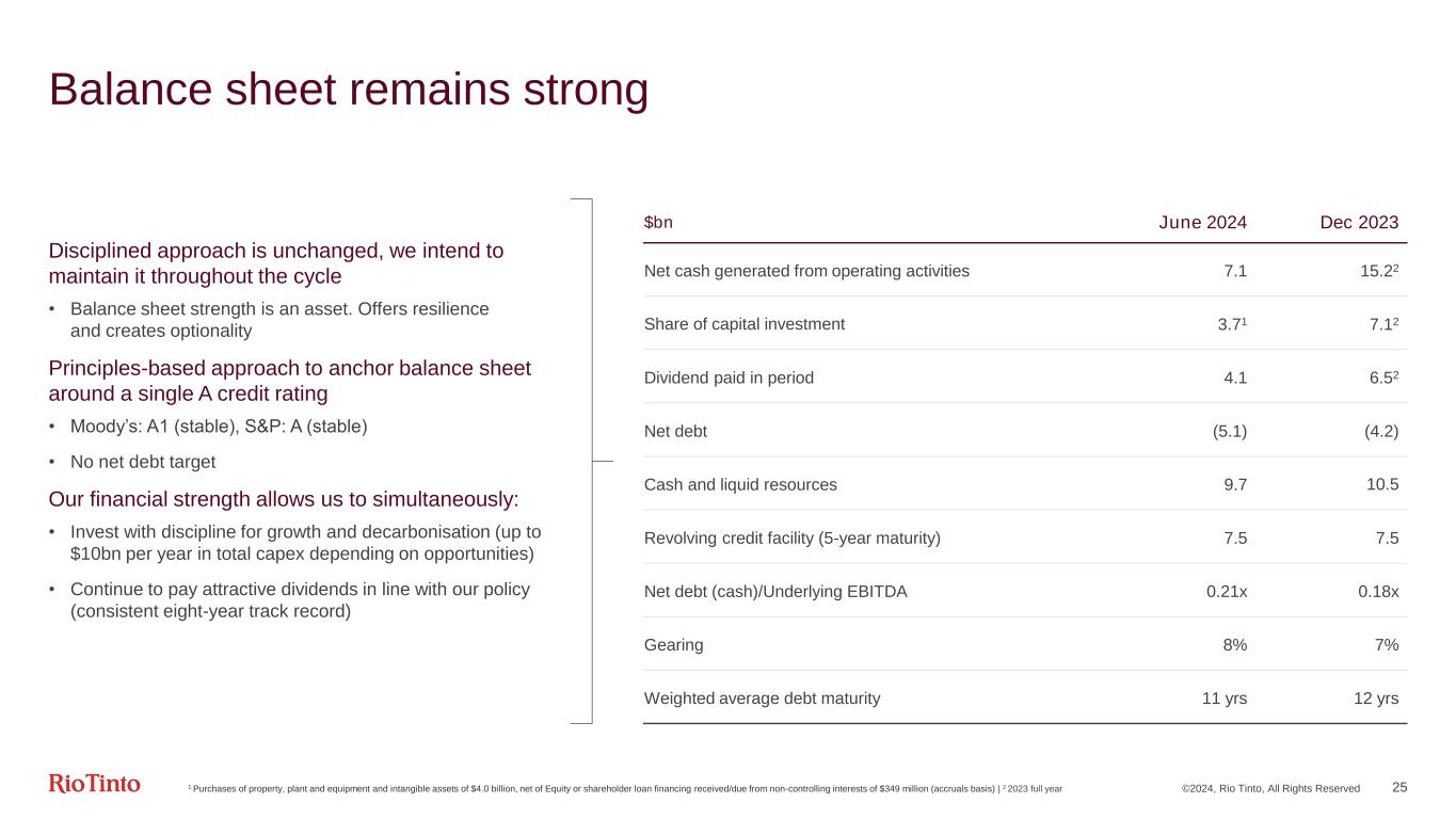 Other financials ©2024, Rio Tinto, All Rights Reserved 24