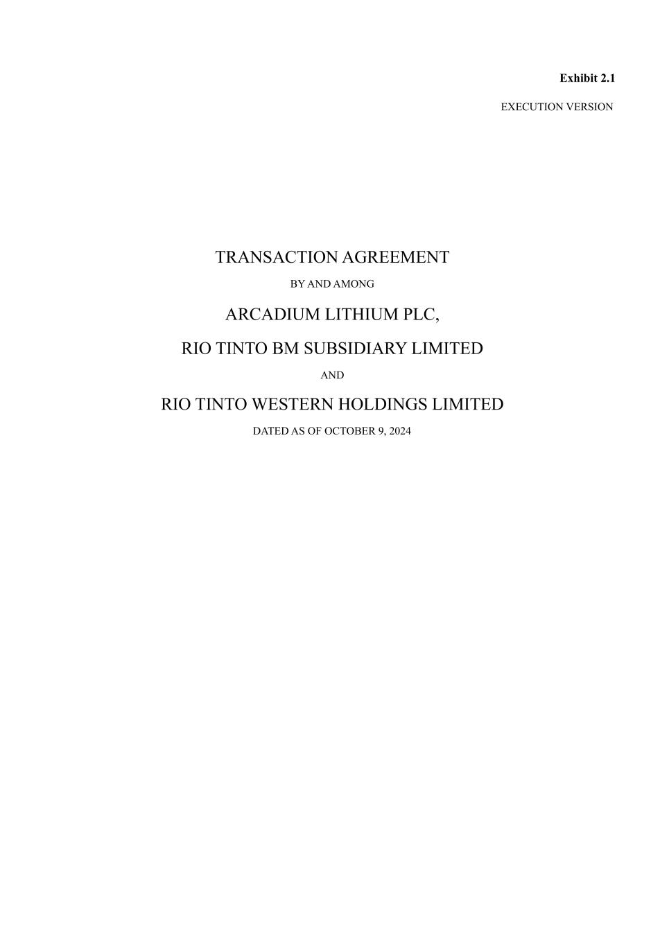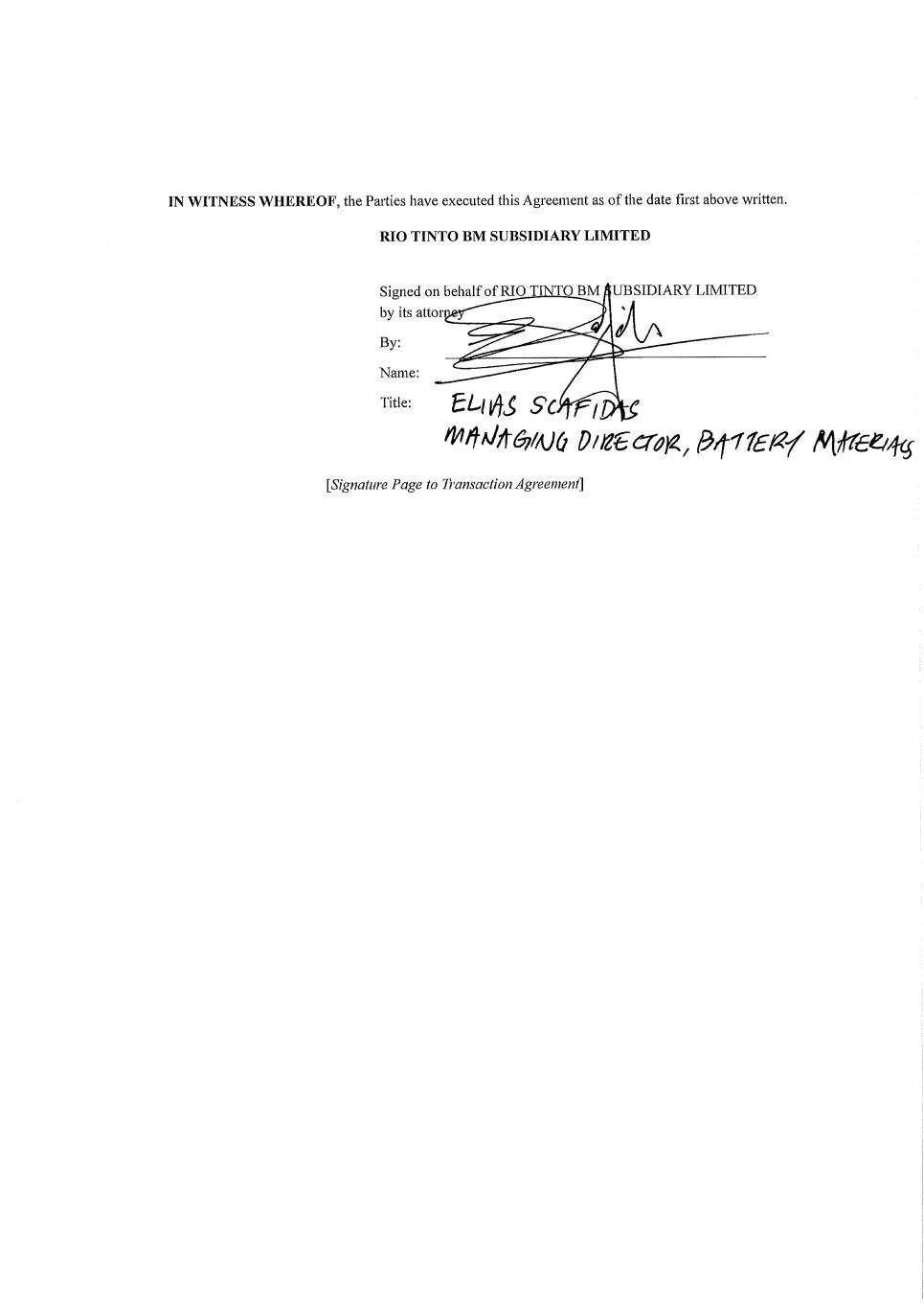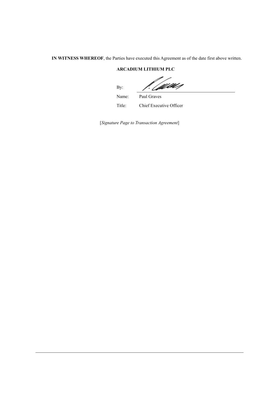 IN WITNESS WHEREOF* j^[ IWhj_[i ^Wl[ [n[Ykj[Z j^_i :]h[[c[dj Wi e\ j^[ ZWj[ \_hij WXel[ mh_jj[d, ARCADIUM LITHIUM PLC ;o8 GWc[8 IWkb @hWl[i M_jb[8 <^_[\ >n[Ykj_l[ H\\_Y[h T7@?D9IJG= 59?= IE 8G9DH9;I@ED -?G==C=DIU