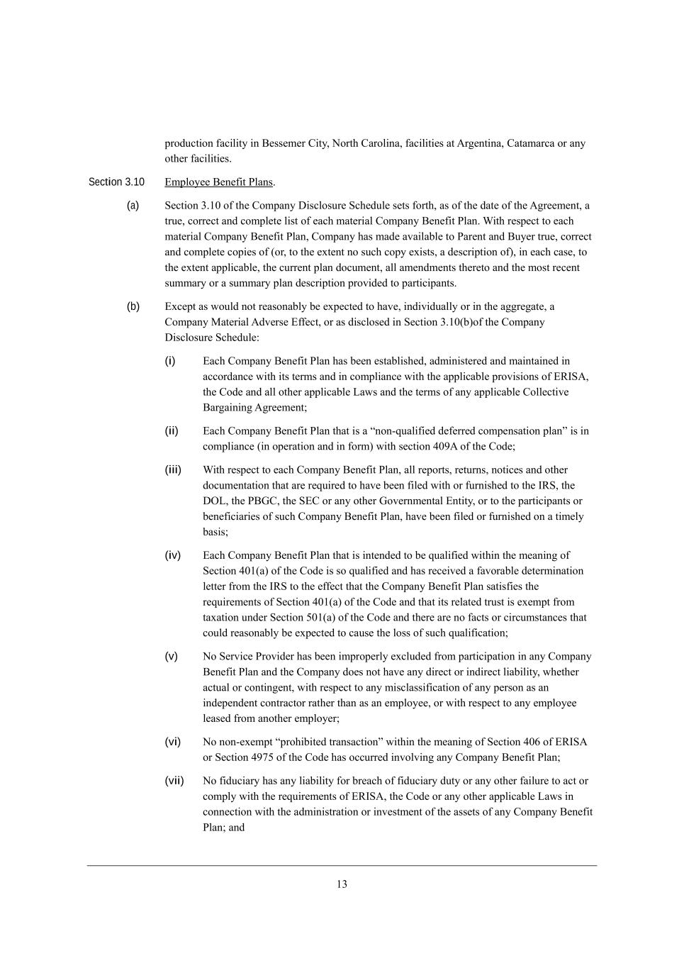 /1 fheZkYj_ed \WY_b_jo _d <[ii[c[h =_jo* Hehj^ =Wheb_dW* \WY_b_j_[i Wj ;h][dj_dW* =WjWcWhYW eh Wdo ej^[h \WY_b_j_[i, Section 3.10 ?cfbeo[[ <[d[\_j JbWdi, (a) M[Yj_ed 1,/. e\ j^[ =ecfWdo >_iYbeikh[ MY^[Zkb[ i[ji \ehj^* Wi e\ j^[ ZWj[ e\ j^[ ;]h[[c[dj* W jhk[* Yehh[Yj WdZ Yecfb[j[ b_ij e\ [WY^ cWj[h_Wb =ecfWdo <[d[\_j JbWd, Q_j^ h[if[Yj je [WY^ cWj[h_Wb =ecfWdo <[d[\_j JbWd* =ecfWdo ^Wi cWZ[ WlW_bWXb[ je JWh[dj WdZ <ko[h jhk[* Yehh[Yj WdZ Yecfb[j[ Yef_[i e\ (eh* je j^[ [nj[dj de ikY^ Yefo [n_iji* W Z[iYh_fj_ed e\)* _d [WY^ YWi[* je j^[ [nj[dj Wffb_YWXb[* j^[ Ykhh[dj fbWd ZeYkc[dj* Wbb Wc[dZc[dji j^[h[je WdZ j^[ ceij h[Y[dj ikccWho eh W ikccWho fbWd Z[iYh_fj_ed fhel_Z[Z je fWhj_Y_fWdji, (b) ?nY[fj Wi mekbZ dej h[WiedWXbo X[ [nf[Yj[Z je ^Wl[* _dZ_l_ZkWbbo eh _d j^[ W]]h[]Wj[* W =ecfWdo GWj[h_Wb ;Zl[hi[ ?\\[Yj* eh Wi Z_iYbei[Z _d M[Yj_ed 1,/.(X)e\ j^[ =ecfWdo >_iYbeikh[ MY^[Zkb[8 (i) ?WY^ =ecfWdo <[d[\_j JbWd ^Wi X[[d [ijWXb_i^[Z* WZc_d_ij[h[Z WdZ cW_djW_d[Z _d WYYehZWdY[ m_j^ _ji j[hci WdZ _d Yecfb_WdY[ m_j^ j^[ Wffb_YWXb[ fhel_i_edi e\ ?LCM;* j^[ =eZ[ WdZ Wbb ej^[h Wffb_YWXb[ FWmi WdZ j^[ j[hci e\ Wdo Wffb_YWXb[ =ebb[Yj_l[ <Wh]W_d_d] ;]h[[c[dj9 (ii) ?WY^ =ecfWdo <[d[\_j JbWd j^Wj _i W rded+gkWb_\_[Z Z[\[hh[Z Yecf[diWj_ed fbWds _i _d Yecfb_WdY[ (_d ef[hWj_ed WdZ _d \ehc) m_j^ i[Yj_ed 2.7; e\ j^[ =eZ[9 (iii) Q_j^ h[if[Yj je [WY^ =ecfWdo <[d[\_j JbWd* Wbb h[fehji* h[jkhdi* dej_Y[i WdZ ej^[h ZeYkc[djWj_ed j^Wj Wh[ h[gk_h[Z je ^Wl[ X[[d \_b[Z m_j^ eh \khd_i^[Z je j^[ CLM* j^[ >IF* j^[ J<A=* j^[ M?= eh Wdo ej^[h Ael[hdc[djWb ?dj_jo* eh je j^[ fWhj_Y_fWdji eh X[d[\_Y_Wh_[i e\ ikY^ =ecfWdo <[d[\_j JbWd* ^Wl[ X[[d \_b[Z eh \khd_i^[Z ed W j_c[bo XWi_i9 (iv) ?WY^ =ecfWdo <[d[\_j JbWd j^Wj _i _dj[dZ[Z je X[ gkWb_\_[Z m_j^_d j^[ c[Wd_d] e\ M[Yj_ed 2./(W) e\ j^[ =eZ[ _i ie gkWb_\_[Z WdZ ^Wi h[Y[_l[Z W \WlehWXb[ Z[j[hc_dWj_ed b[jj[h \hec j^[ CLM je j^[ [\\[Yj j^Wj j^[ =ecfWdo <[d[\_j JbWd iWj_i\_[i j^[ h[gk_h[c[dji e\ M[Yj_ed 2./(W) e\ j^[ =eZ[ WdZ j^Wj _ji h[bWj[Z jhkij _i [n[cfj \hec jWnWj_ed kdZ[h M[Yj_ed 3./(W) e\ j^[ =eZ[ WdZ j^[h[ Wh[ de \WYji eh Y_hYkcijWdY[i j^Wj YekbZ h[WiedWXbo X[ [nf[Yj[Z je YWki[ j^[ beii e\ ikY^ gkWb_\_YWj_ed9 (v) He M[hl_Y[ Jhel_Z[h ^Wi X[[d _cfhef[hbo [nYbkZ[Z \hec fWhj_Y_fWj_ed _d Wdo =ecfWdo <[d[\_j JbWd WdZ j^[ =ecfWdo Ze[i dej ^Wl[ Wdo Z_h[Yj eh _dZ_h[Yj b_WX_b_jo* m^[j^[h WYjkWb eh Yedj_d][dj* m_j^ h[if[Yj je Wdo c_iYbWii_\_YWj_ed e\ Wdo f[hied Wi Wd _dZ[f[dZ[dj YedjhWYjeh hWj^[h j^Wd Wi Wd [cfbeo[[* eh m_j^ h[if[Yj je Wdo [cfbeo[[ b[Wi[Z \hec Wdej^[h [cfbeo[h9 (vi) He ded+[n[cfj rfhe^_X_j[Z jhWdiWYj_eds m_j^_d j^[ c[Wd_d] e\ M[Yj_ed 2.4 e\ ?LCM; eh M[Yj_ed 2753 e\ j^[ =eZ[ ^Wi eYYkhh[Z _dlebl_d] Wdo =ecfWdo <[d[\_j JbWd9 (vii) He \_ZkY_Who ^Wi Wdo b_WX_b_jo \eh Xh[WY^ e\ \_ZkY_Who Zkjo eh Wdo ej^[h \W_bkh[ je WYj eh Yecfbo m_j^ j^[ h[gk_h[c[dji e\ ?LCM;* j^[ =eZ[ eh Wdo ej^[h Wffb_YWXb[ FWmi _d Yedd[Yj_ed m_j^ j^[ WZc_d_ijhWj_ed eh _dl[ijc[dj e\ j^[ Wii[ji e\ Wdo =ecfWdo <[d[\_j JbWd9 WdZ