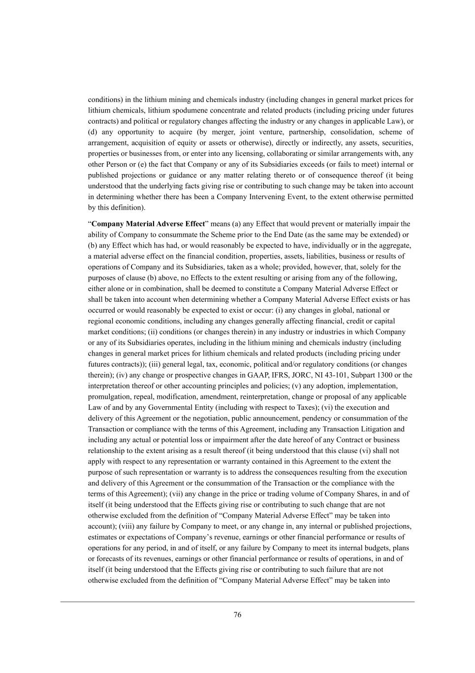 54 YedZ_j_edi) _d j^[ b_j^_kc c_d_d] WdZ Y^[c_YWbi _dZkijho (_dYbkZ_d] Y^Wd][i _d ][d[hWb cWha[j fh_Y[i \eh b_j^_kc Y^[c_YWbi* b_j^_kc ifeZkc[d[ YedY[djhWj[ WdZ h[bWj[Z fheZkYji (_dYbkZ_d] fh_Y_d] kdZ[h \kjkh[i YedjhWYji) WdZ feb_j_YWb eh h[]kbWjeho Y^Wd][i W\\[Yj_d] j^[ _dZkijho eh Wdo Y^Wd][i _d Wffb_YWXb[ FWm)* eh (Z) Wdo effehjkd_jo je WYgk_h[ (Xo c[h][h* `e_dj l[djkh[* fWhjd[hi^_f* Yedieb_ZWj_ed* iY^[c[ e\ WhhWd][c[dj* WYgk_i_j_ed e\ [gk_jo eh Wii[ji eh ej^[hm_i[)* Z_h[Yjbo eh _dZ_h[Yjbo* Wdo Wii[ji* i[Ykh_j_[i* fhef[hj_[i eh Xki_d[ii[i \hec* eh [dj[h _dje Wdo b_Y[di_d]* YebbWXehWj_d] eh i_c_bWh WhhWd][c[dji m_j^* Wdo ej^[h J[hied eh ([) j^[ \WYj j^Wj =ecfWdo eh Wdo e\ _ji MkXi_Z_Wh_[i [nY[[Zi (eh \W_bi je c[[j) _dj[hdWb eh fkXb_i^[Z fhe`[Yj_edi eh ]k_ZWdY[ eh Wdo cWjj[h h[bWj_d] j^[h[je eh e\ Yedi[gk[dY[ j^[h[e\ (_j X[_d] kdZ[hijeeZ j^Wj j^[ kdZ[hbo_d] \WYji ]_l_d] h_i[ eh Yedjh_Xkj_d] je ikY^ Y^Wd][ cWo X[ jWa[d _dje WYYekdj _d Z[j[hc_d_d] m^[j^[h j^[h[ ^Wi X[[d W =ecfWdo Cdj[hl[d_d] ?l[dj* je j^[ [nj[dj ej^[hm_i[ f[hc_jj[Z Xo j^_i Z[\_d_j_ed), rCompany Material Adverse Effects c[Wdi (W) Wdo ?\\[Yj j^Wj mekbZ fh[l[dj eh cWj[h_Wbbo _cfW_h j^[ WX_b_jo e\ =ecfWdo je YedikccWj[ j^[ MY^[c[ fh_eh je j^[ ?dZ >Wj[ (Wi j^[ iWc[ cWo X[ [nj[dZ[Z) eh (X) Wdo ?\\[Yj m^_Y^ ^Wi ^WZ* eh mekbZ h[WiedWXbo X[ [nf[Yj[Z je ^Wl[* _dZ_l_ZkWbbo eh _d j^[ W]]h[]Wj[* W cWj[h_Wb WZl[hi[ [\\[Yj ed j^[ \_dWdY_Wb YedZ_j_ed* fhef[hj_[i* Wii[ji* b_WX_b_j_[i* Xki_d[ii eh h[ikbji e\ ef[hWj_edi e\ =ecfWdo WdZ _ji MkXi_Z_Wh_[i* jWa[d Wi W m^eb[9 fhel_Z[Z* ^em[l[h* j^Wj* ieb[bo \eh j^[ fkhfei[i e\ YbWki[ (X) WXel[* de ?\\[Yji je j^[ [nj[dj h[ikbj_d] eh Wh_i_d] \hec Wdo e\ j^[ \ebbem_d]* [_j^[h Wbed[ eh _d YecX_dWj_ed* i^Wbb X[ Z[[c[Z je Yedij_jkj[ W =ecfWdo GWj[h_Wb ;Zl[hi[ ?\\[Yj eh i^Wbb X[ jWa[d _dje WYYekdj m^[d Z[j[hc_d_d] m^[j^[h W =ecfWdo GWj[h_Wb ;Zl[hi[ ?\\[Yj [n_iji eh ^Wi eYYkhh[Z eh mekbZ h[WiedWXbo X[ [nf[Yj[Z je [n_ij eh eYYkh8 (_) Wdo Y^Wd][i _d ]beXWb* dWj_edWb eh h[]_edWb [Yedec_Y YedZ_j_edi* _dYbkZ_d] Wdo Y^Wd][i ][d[hWbbo W\\[Yj_d] \_dWdY_Wb* Yh[Z_j eh YWf_jWb cWha[j YedZ_j_edi9 (__) YedZ_j_edi (eh Y^Wd][i j^[h[_d) _d Wdo _dZkijho eh _dZkijh_[i _d m^_Y^ =ecfWdo eh Wdo e\ _ji MkXi_Z_Wh_[i ef[hWj[i* _dYbkZ_d] _d j^[ b_j^_kc c_d_d] WdZ Y^[c_YWbi _dZkijho (_dYbkZ_d] Y^Wd][i _d ][d[hWb cWha[j fh_Y[i \eh b_j^_kc Y^[c_YWbi WdZ h[bWj[Z fheZkYji (_dYbkZ_d] fh_Y_d] kdZ[h \kjkh[i YedjhWYji))9 (___) ][d[hWb b[]Wb* jWn* [Yedec_Y* feb_j_YWb WdZ-eh h[]kbWjeho YedZ_j_edi (eh Y^Wd][i j^[h[_d)9 (_l) Wdo Y^Wd][ eh fheif[Yj_l[ Y^Wd][i _d A;;J* C@LM* DIL=* HC 21+/./* MkXfWhj /1.. eh j^[ _dj[hfh[jWj_ed j^[h[e\ eh ej^[h WYYekdj_d] fh_dY_fb[i WdZ feb_Y_[i9 (l) Wdo WZefj_ed* _cfb[c[djWj_ed* fheckb]Wj_ed* h[f[Wb* ceZ_\_YWj_ed* Wc[dZc[dj* h[_dj[hfh[jWj_ed* Y^Wd][ eh fhefeiWb e\ Wdo Wffb_YWXb[ FWm e\ WdZ Xo Wdo Ael[hdc[djWb ?dj_jo (_dYbkZ_d] m_j^ h[if[Yj je NWn[i)9 (l_) j^[ [n[Ykj_ed WdZ Z[b_l[ho e\ j^_i ;]h[[c[dj eh j^[ d[]ej_Wj_ed* fkXb_Y WddekdY[c[dj* f[dZ[dYo eh YedikccWj_ed e\ j^[ NhWdiWYj_ed eh Yecfb_WdY[ m_j^ j^[ j[hci e\ j^_i ;]h[[c[dj* _dYbkZ_d] Wdo NhWdiWYj_ed F_j_]Wj_ed WdZ _dYbkZ_d] Wdo WYjkWb eh fej[dj_Wb beii eh _cfW_hc[dj W\j[h j^[ ZWj[ ^[h[e\ e\ Wdo =edjhWYj eh Xki_d[ii h[bWj_edi^_f je j^[ [nj[dj Wh_i_d] Wi W h[ikbj j^[h[e\ (_j X[_d] kdZ[hijeeZ j^Wj j^_i YbWki[ (l_) i^Wbb dej Wffbo m_j^ h[if[Yj je Wdo h[fh[i[djWj_ed eh mWhhWdjo YedjW_d[Z _d j^_i ;]h[[c[dj je j^[ [nj[dj j^[ fkhfei[ e\ ikY^ h[fh[i[djWj_ed eh mWhhWdjo _i je WZZh[ii j^[ Yedi[gk[dY[i h[ikbj_d] \hec j^[ [n[Ykj_ed WdZ Z[b_l[ho e\ j^_i ;]h[[c[dj eh j^[ YedikccWj_ed e\ j^[ NhWdiWYj_ed eh j^[ Yecfb_WdY[ m_j^ j^[ j[hci e\ j^_i ;]h[[c[dj)9 (l__) Wdo Y^Wd][ _d j^[ fh_Y[ eh jhWZ_d] lebkc[ e\ =ecfWdo M^Wh[i* _d WdZ e\ _ji[b\ (_j X[_d] kdZ[hijeeZ j^Wj j^[ ?\\[Yji ]_l_d] h_i[ eh Yedjh_Xkj_d] je ikY^ Y^Wd][ j^Wj Wh[ dej ej^[hm_i[ [nYbkZ[Z \hec j^[ Z[\_d_j_ed e\ r=ecfWdo GWj[h_Wb ;Zl[hi[ ?\\[Yjs cWo X[ jWa[d _dje WYYekdj)9 (l___) Wdo \W_bkh[ Xo =ecfWdo je c[[j* eh Wdo Y^Wd][ _d* Wdo _dj[hdWb eh fkXb_i^[Z fhe`[Yj_edi* [ij_cWj[i eh [nf[YjWj_edi e\ =ecfWdoui h[l[dk[* [Whd_d]i eh ej^[h \_dWdY_Wb f[h\ehcWdY[ eh h[ikbji e\ ef[hWj_edi \eh Wdo f[h_eZ* _d WdZ e\ _ji[b\* eh Wdo \W_bkh[ Xo =ecfWdo je c[[j _ji _dj[hdWb XkZ][ji* fbWdi eh \eh[YWiji e\ _ji h[l[dk[i* [Whd_d]i eh ej^[h \_dWdY_Wb f[h\ehcWdY[ eh h[ikbji e\ ef[hWj_edi* _d WdZ e\ _ji[b\ (_j X[_d] kdZ[hijeeZ j^Wj j^[ ?\\[Yji ]_l_d] h_i[ eh Yedjh_Xkj_d] je ikY^ \W_bkh[ j^Wj Wh[ dej ej^[hm_i[ [nYbkZ[Z \hec j^[ Z[\_d_j_ed e\ r=ecfWdo GWj[h_Wb ;Zl[hi[ ?\\[Yjs cWo X[ jWa[d _dje
