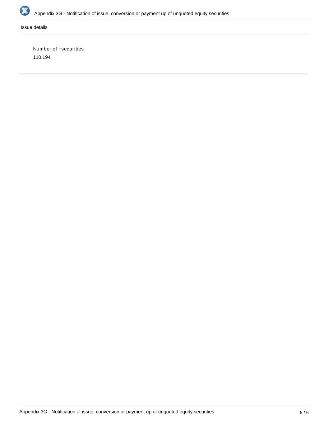 Appendix 3G - Notification of issue, conversion or payment up of unquoted equity securities Appendix 3G - Notification of issue, conversion or payment up of unquoted equity securities 5 / 6 Issue details Number of +securities 110,194