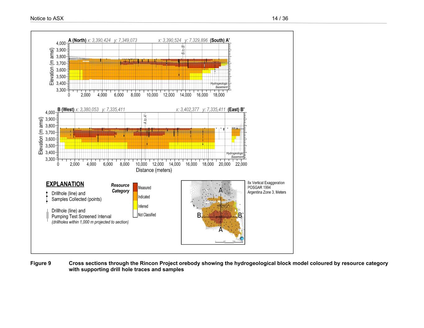 Notice to ASX 14 / 36 RioTintoNonBusiness Figure 9 Cross sections through the Rincon Project orebody showing the hydrogeological block model coloured by resource category with supporting drill hole traces and samples