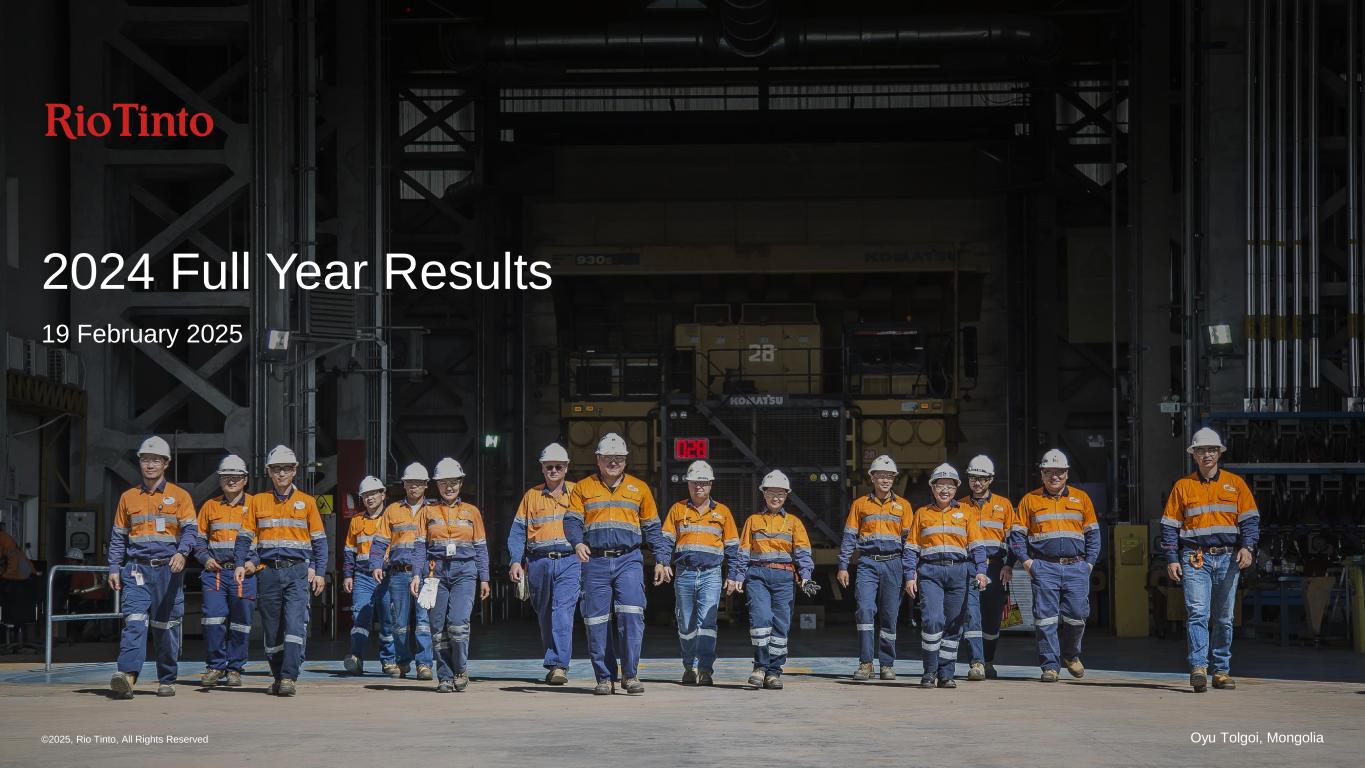 2024 Full Year Results 19 February 2025 Oyu Tolgoi, Mongolia©2025, Rio Tinto, All Rights Reserved