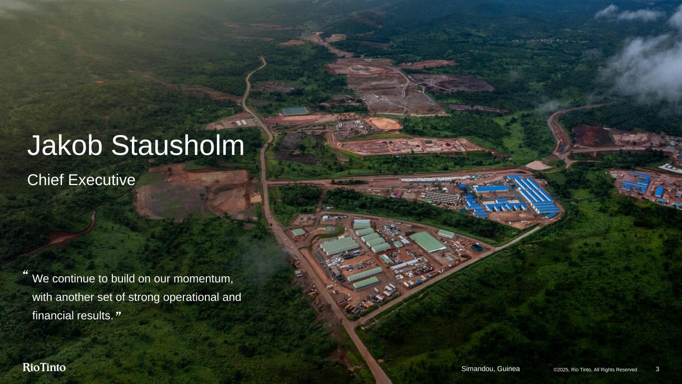 Jakob Stausholm Chief Executive We continue to build on our momentum, with another set of strong operational and financial results. Simandou, Guinea 3©2025, Rio Tinto, All Rights Reserved