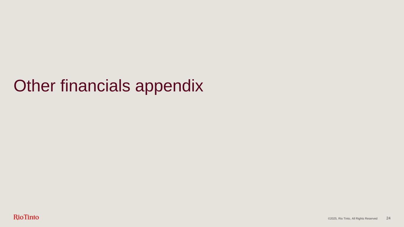 Other financials appendix 24©2025, Rio Tinto, All Rights Reserved