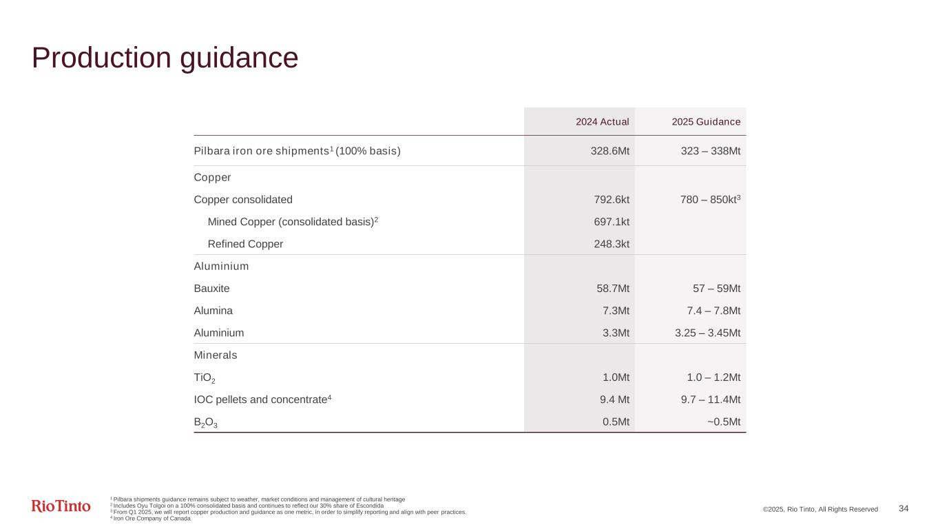 Guidance ©2025, Rio Tinto, All Rights Reserved 33