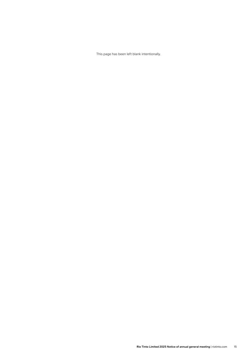 This page has been left blank intentionally. 15Rio Tinto Limited 2025 Notice of annual general meeting | riotinto.com