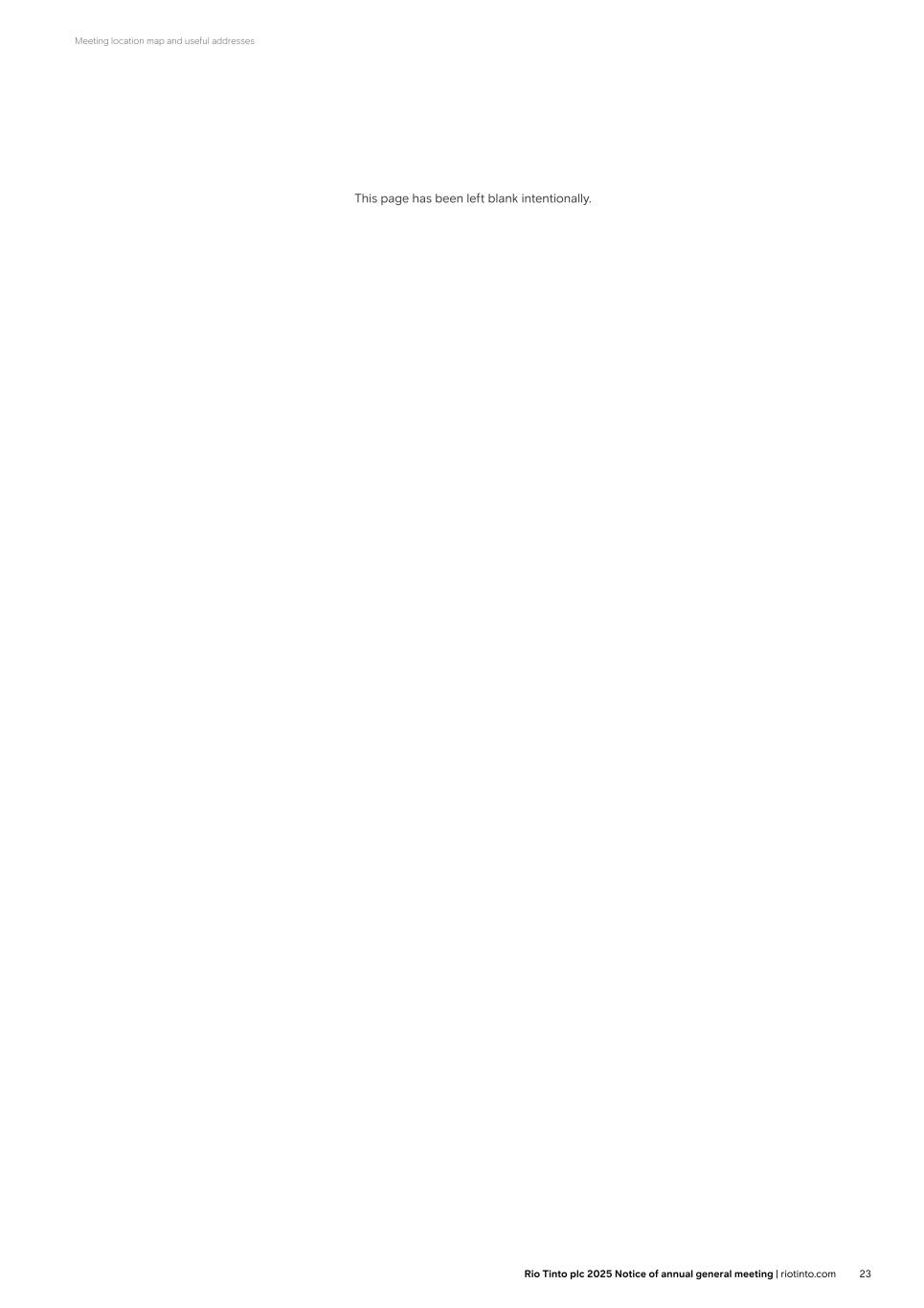 Meeting location map and useful addresses This page has been left blank intentionally. 23Rio Tinto plc 2025 Notice of annual general meeting | riotinto.com