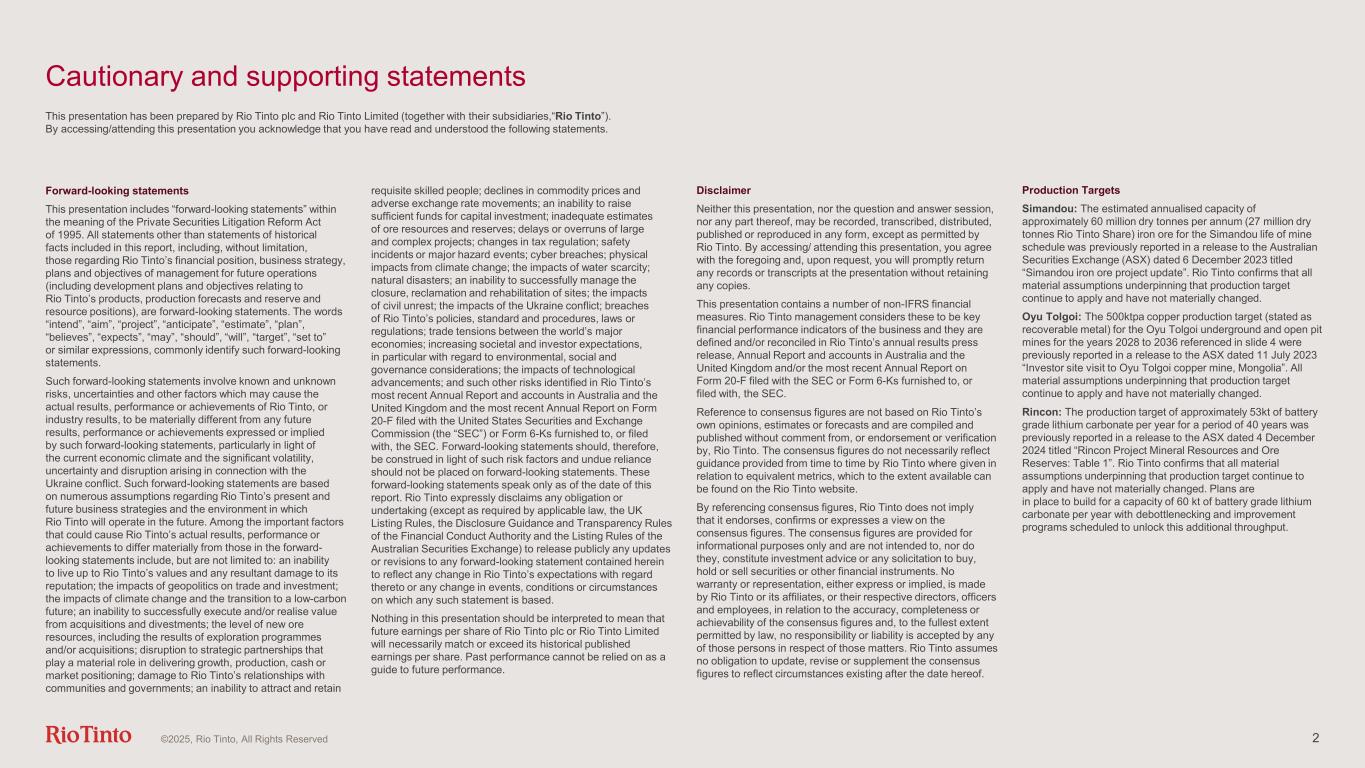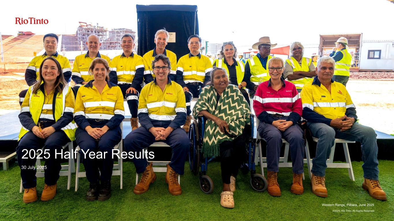 1 2025 Half Year Results 30 July 2025 Western Range, Pilbara, June 2025 ©2025, Rio Tinto, All Rights Reserved