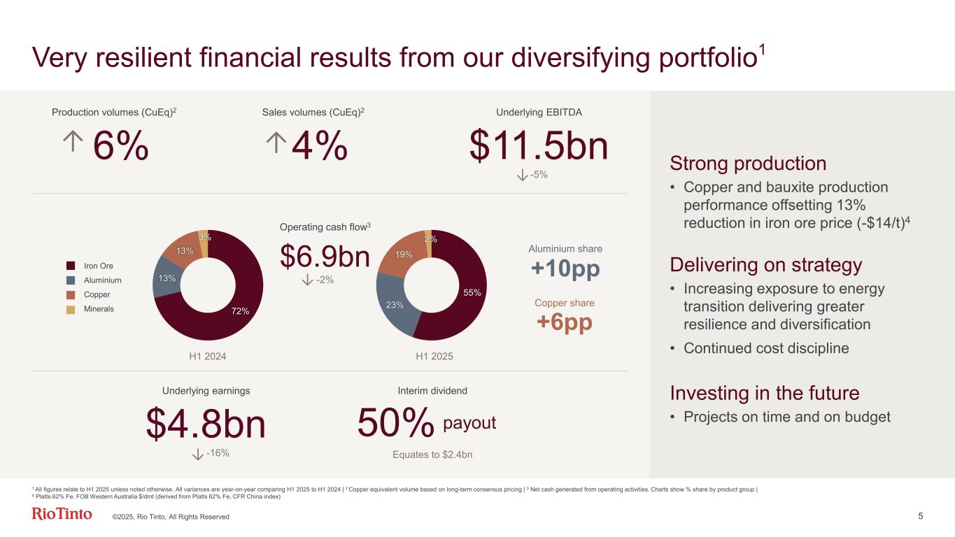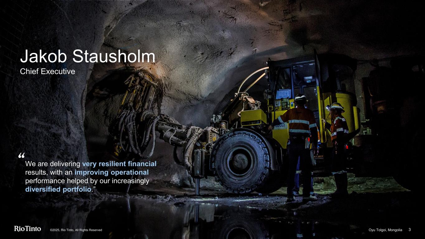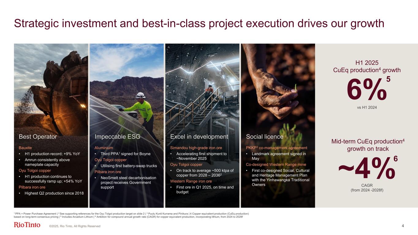Jakob Stausholm Chief Executive 3 “ Oyu Tolgoi, Mongolia©2025, Rio Tinto, All Rights Reserved We are delivering very resilient financial results, with an improving operational performance helped by our increasingly diversified portfolio.”