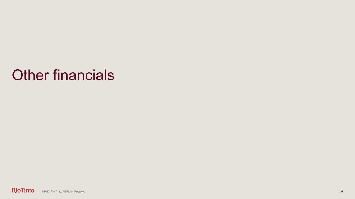 Other financials 24©2025, Rio Tinto, All Rights Reserved