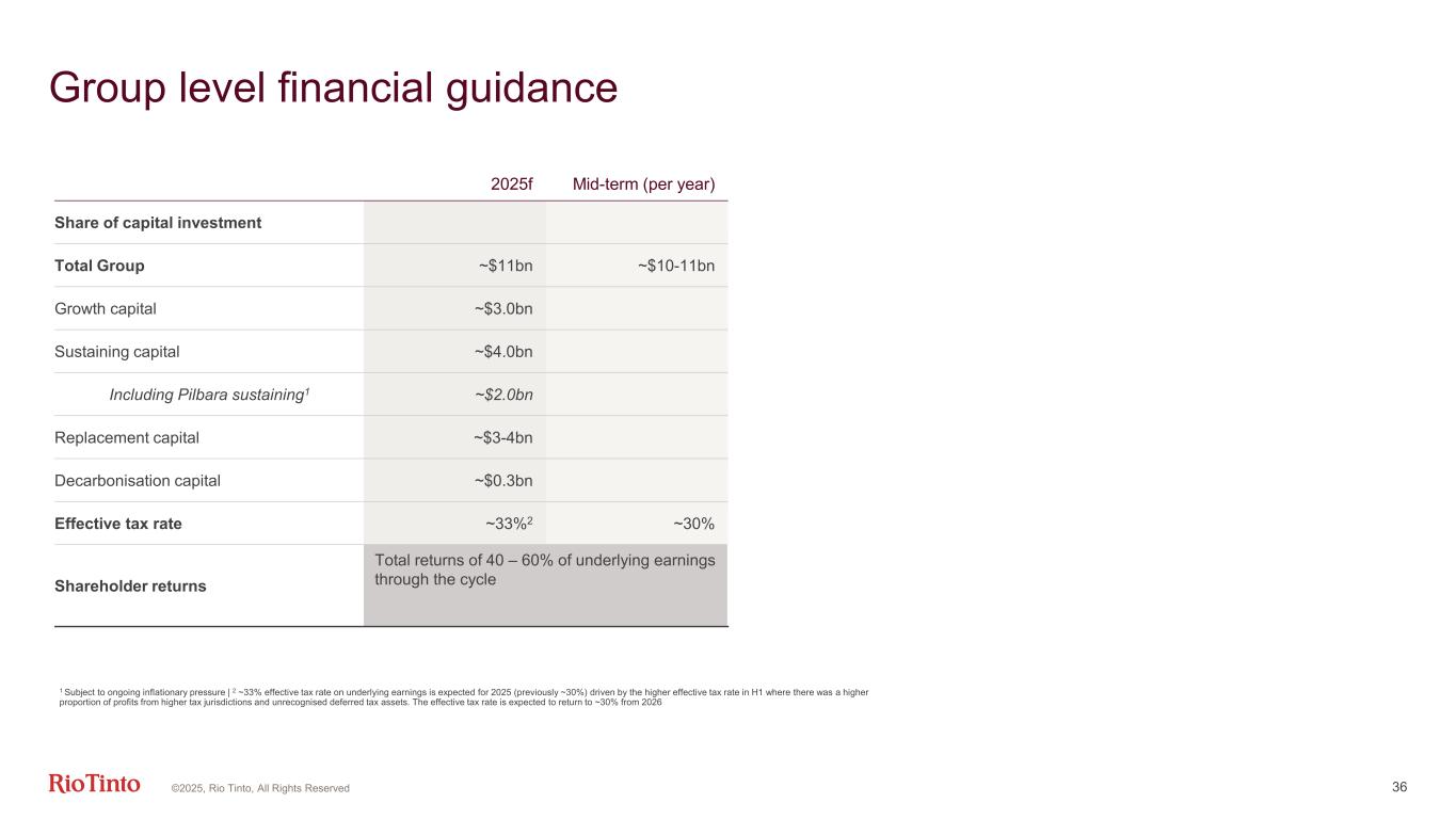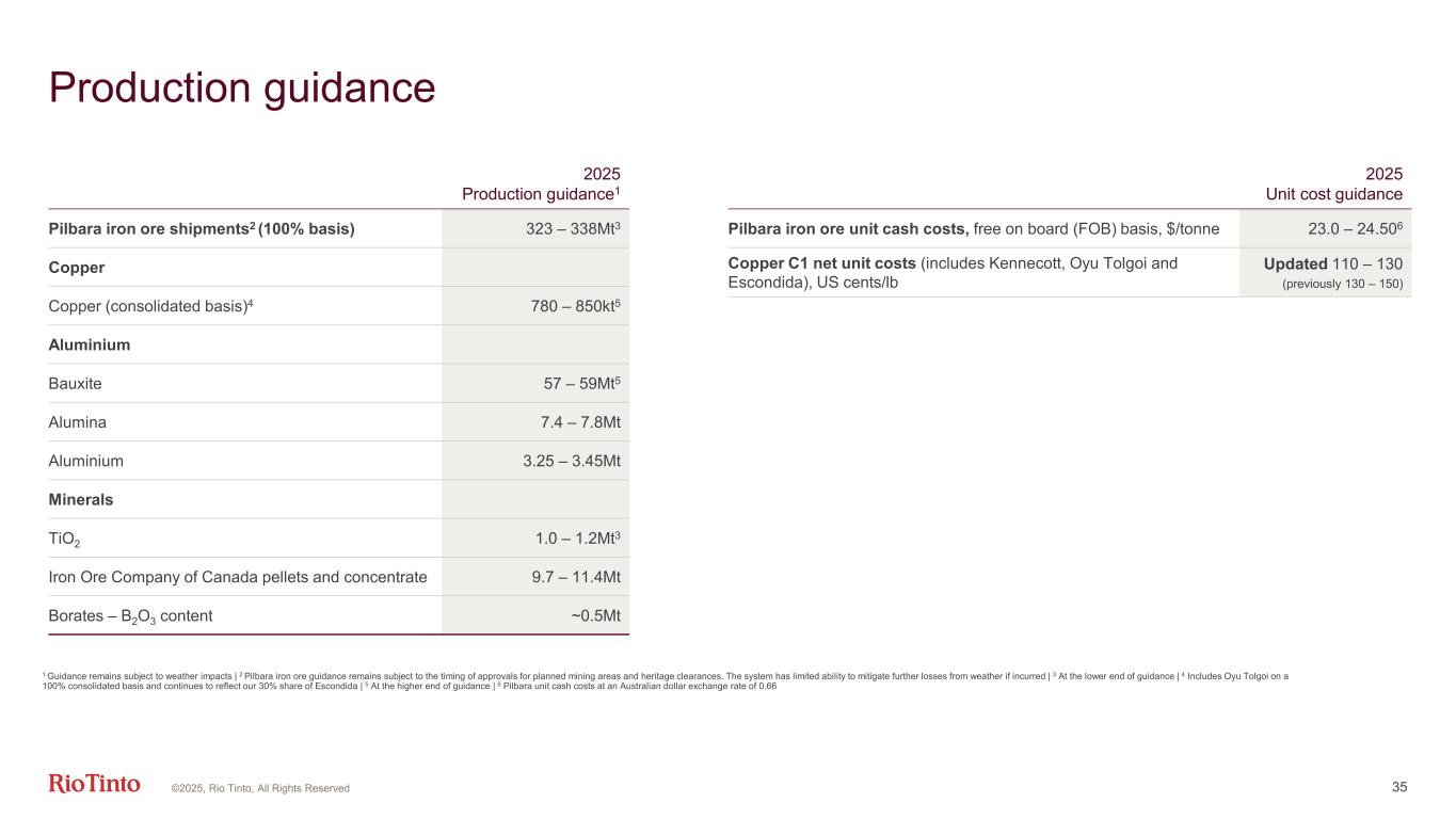 Guidance 34©2025, Rio Tinto, All Rights Reserved