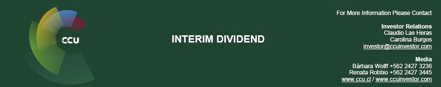 (Santiago, Chile, November 6th, 2024) – The Board of Directors approved today the distribution of the interim dividend Nº 269 of CLP 117.5 per share (CLP 235.0 per ADR), totaling CLP 43,416,587,460, to be charged against 2024 Net profit. This dividend will be paid beginning November 28th, 2024, to all shareholders of record at midnight on November 22nd, 2024.