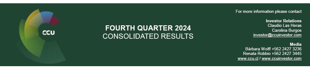 Santiago, Chile, February 25, 2025 – CCU announced today its consolidated financial and operating results1,2